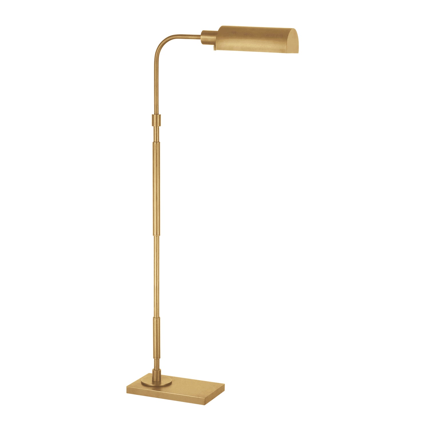 • Contemporary floor lamp with modern brass finish featuring directional shade design for sophisticated lighting