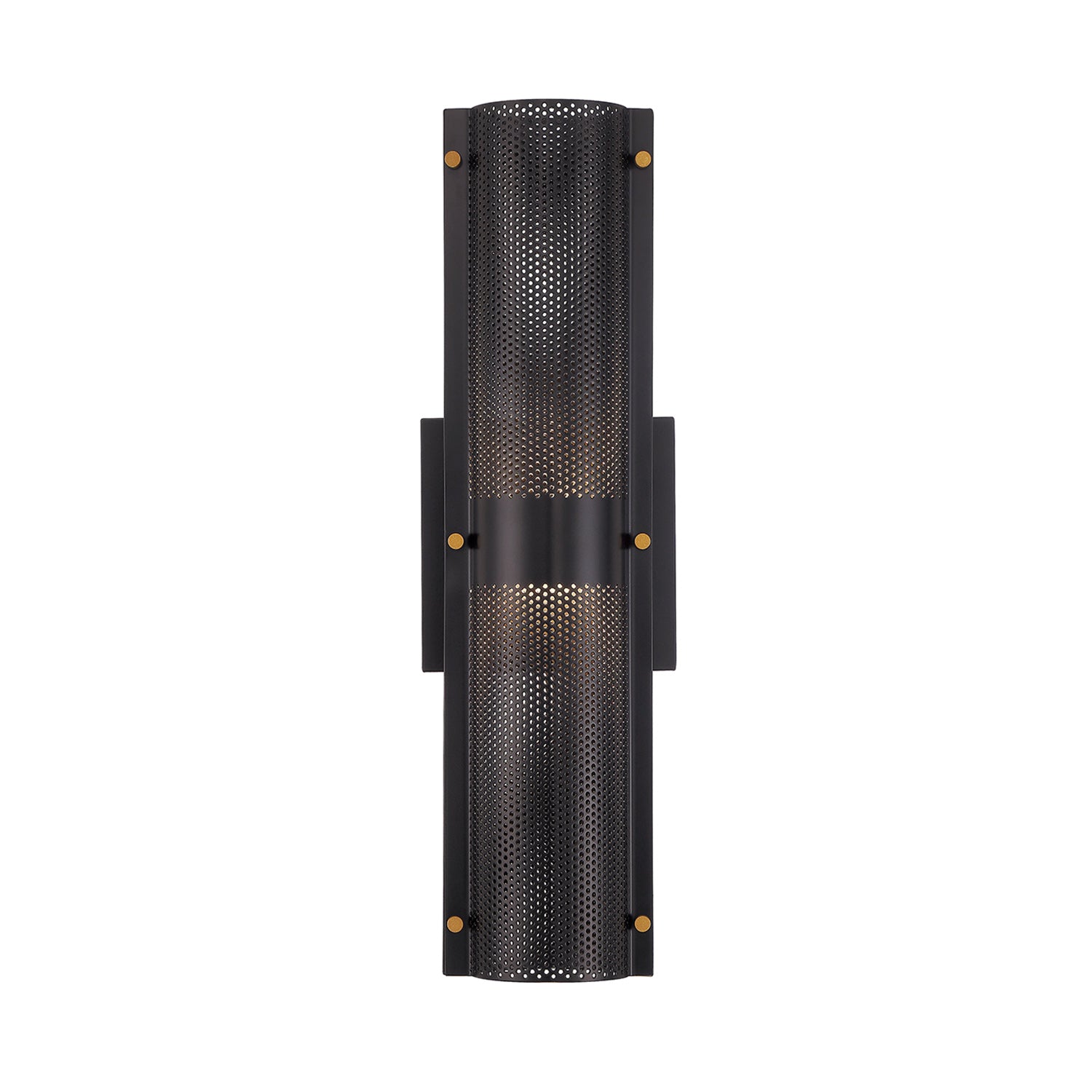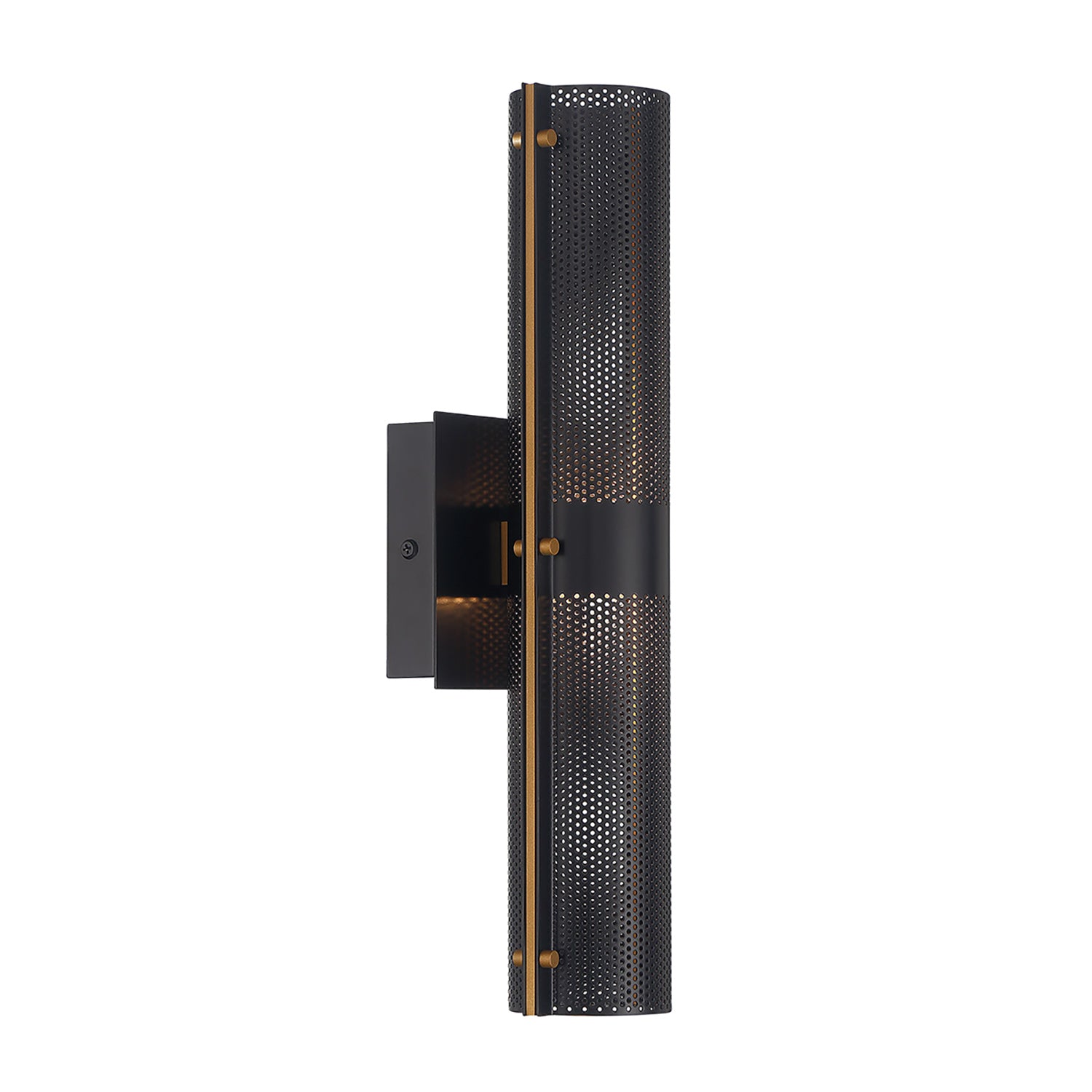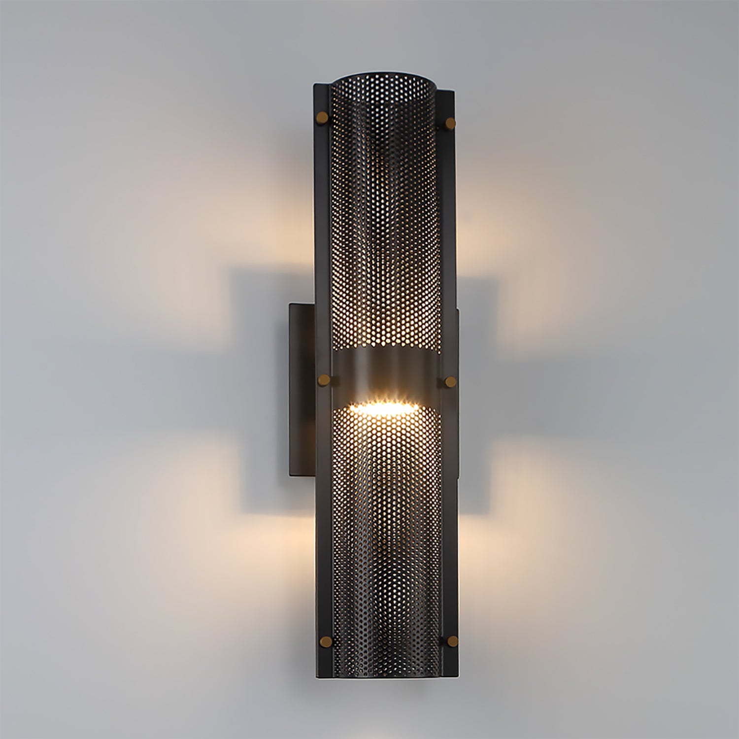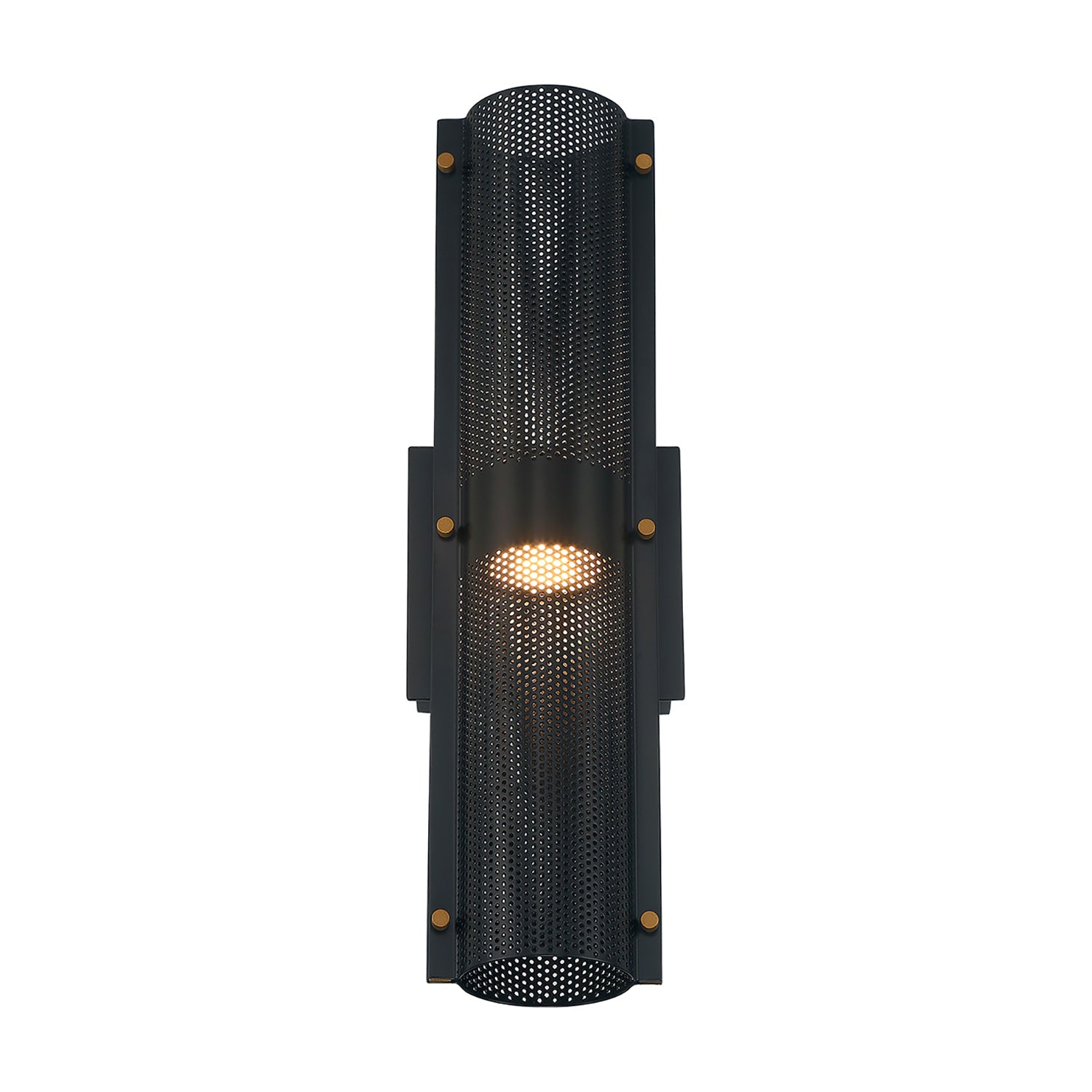 The Quin LED Outdoor Wall Light features a perforated metal shade that filters light through carefully designed openings, creating illumination that transforms entryways, patios, and outdoor living areas by casting a soft glow on surrounding walls. The textured pattern reduces glare while displaying a warm gradient of light, and the contrast between the deep black finish and luminous gold accents delivers contemporary elegance with an industrial sophistication. At 17" in height with integrated LED technology and compact mounting, this outdoor sconce makes a refined statement that brings modern drama to any exterior.