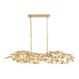 The Alison Linear Chandelier 50" is a classic transitional light that makes a breathtaking statement with its intricate, nature-inspired design. The fixture features individual wrought iron leaves that are masterfully arranged to create a shimmering, cloud-like silhouette. This glamorous linear chandelier is thoughtfully designed to provide stunning, multi-directional illumination, making it an ideal centerpiece for a large dining table or kitchen island. With its UL damp rating, it offers both exceptional visual interest and versatile appeal in various indoor environments. The opulent Antique Gold finish enhances the delicate floral details, delivering enduring style and a perfect blend of artistic elegance and modern charm.