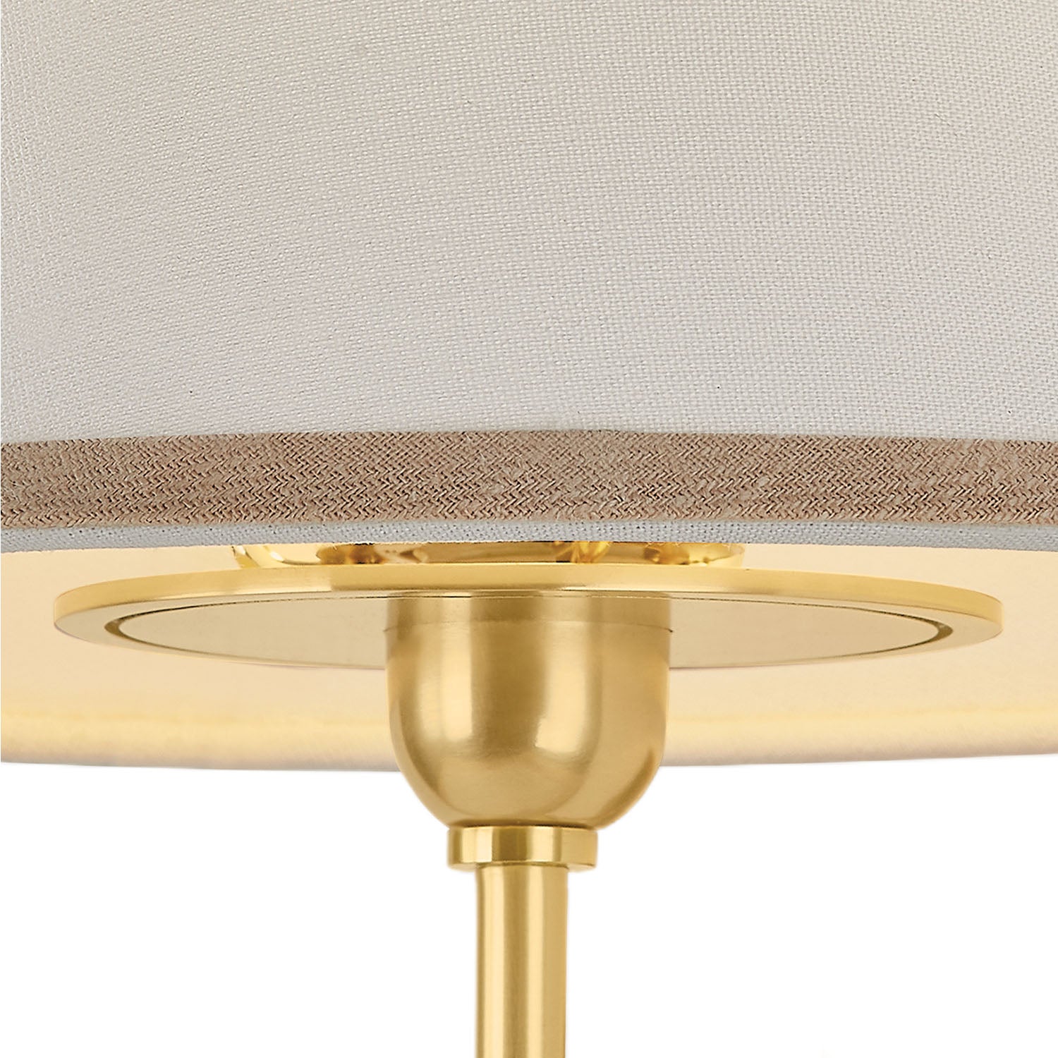 The Belmont Wall Sconce 11" features a classic silhouette that brings a sophisticated presence to any space. The wide white linen tapered shade creates a voluminous effect, filling the room with a soft glow. Subtle contrasting trim along the shade edge provides visual interest while remaining fresh and neutral. The steel frame is finished in Aged Brass with rounded right angles that keep the design feeling soft and refined.
