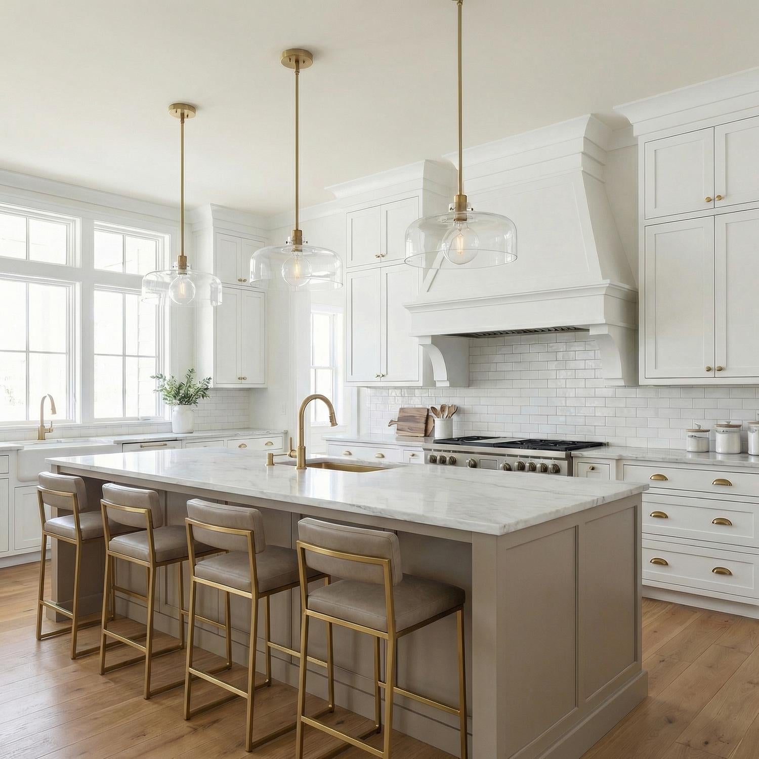• The warm satin brass hardware enhances the brilliance of the clear glass