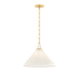 The Charlotte Small Pendant is a classic transitional light fixture that makes a sophisticated statement with its simple, elegant silhouette. The fixture features a broad faux silk fabric shade, designed to provide soft, expansive ambient light. This small pendant is thoughtfully sized to be an ideal choice over a kitchen island, reading nook, or smaller dining area. With its UL damp rating, it offers both visual interest and practical functionality. The rich Aged Brass finish enhances the fixture's tailored simplicity, resulting in a look of enduring style and timeless elegance. This striking collection delivers enduring style and a perfect blend of elegance and simplicity.