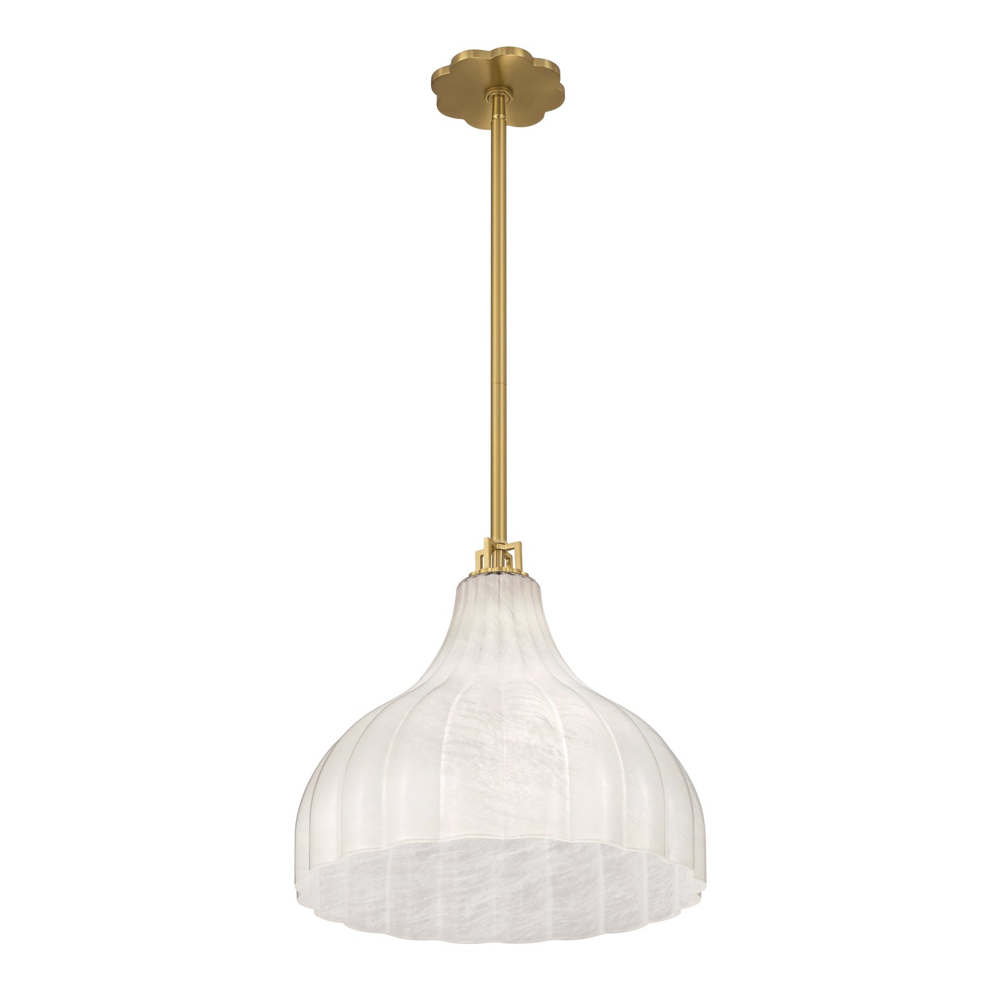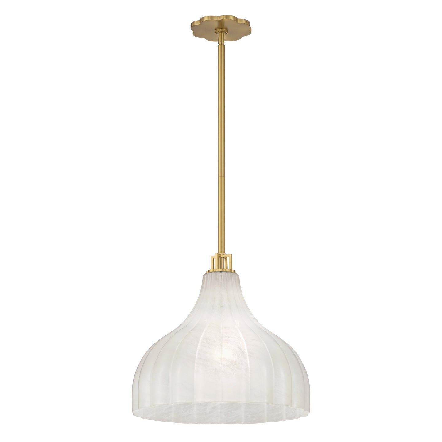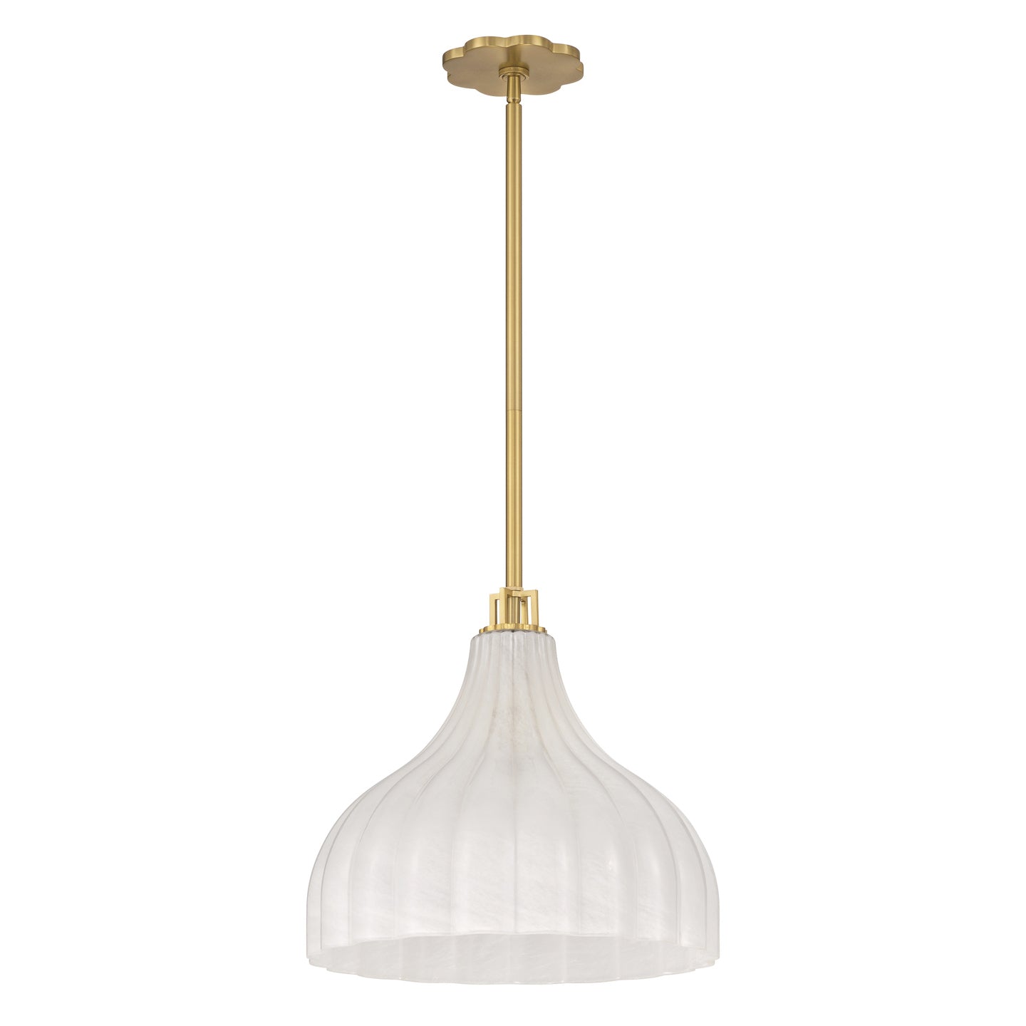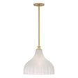 • Claire pendant features a premium fluted strie glass shade, suspended by aged brass hardware