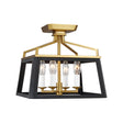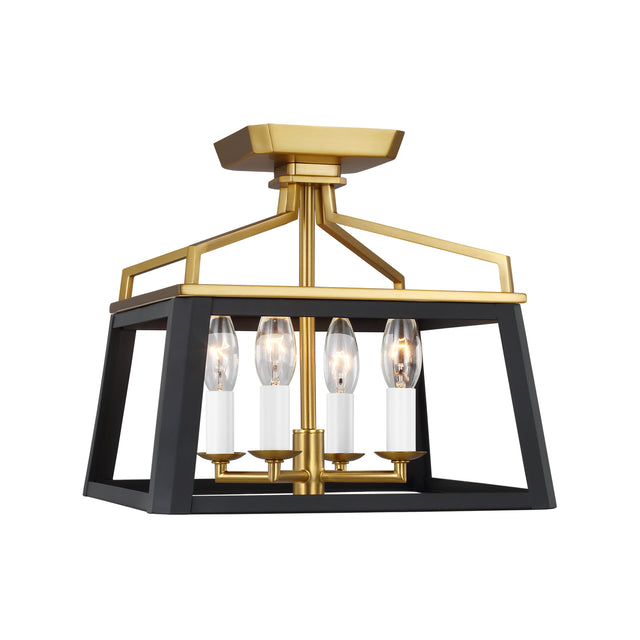 The Fillmore Semi-Flush Mount makes a refined statement with its traditional form and timeless appeal. Its beautifully tapered square silhouette provides a clean, elegant look that is perfectly suited for spaces with lower ceilings. This fixture is thoughtfully designed with a four-light candelabra cluster, providing sophisticated illumination that is perfect for an entryway, hallway, or any room where enduring style and functional light are needed. The sophisticated two-tone finish of a matte black exterior and a warm modern brass frame creates a high-contrast statement that adds both functional beauty and enduring style to any space.