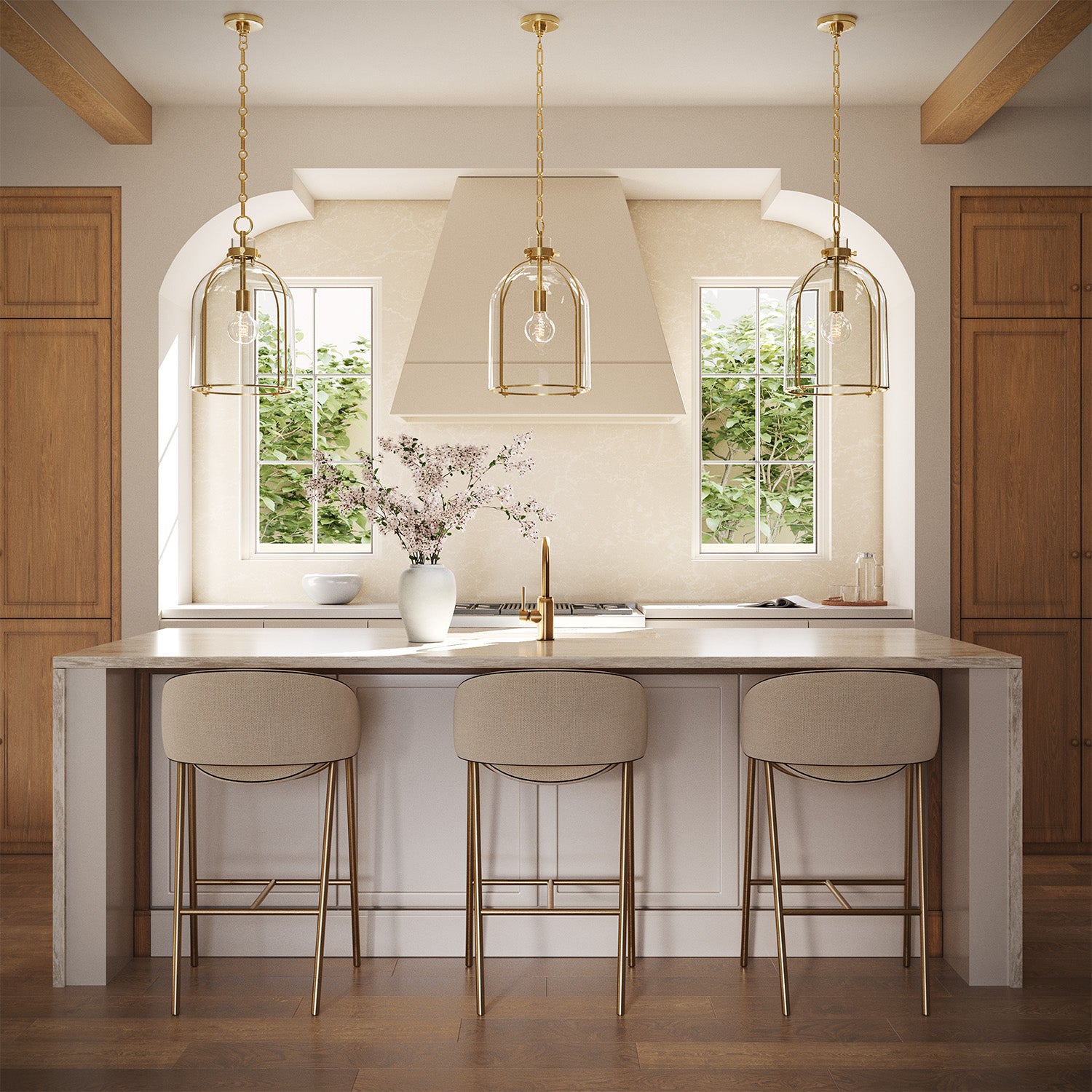 The Lana Pendant 16" is a minimalist cage pendant with sophisticated style that brings elegant simplicity to any space. The clear glass shade beautifully showcases the bulb within, while the aged brass framework creates a striking contrast and visual interest. The bell-shaped silhouette combines classic proportions with contemporary appeal, suspended from a gorgeously detailed chain that adds refined elegance to the overall design. Perfect for kitchen islands, dining areas, or accent lighting, this pendant delivers both ambient illumination and architectural beauty. The Lana pendant transforms ordinary spaces with its timeless blend of materials and understated sophistication.