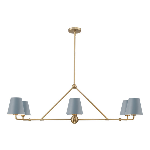 Banks 6 Light Linear Chandelier 46", French Blue and Brass