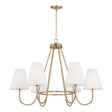 The Dorian 6 Light Chandelier brings timeless sophistication to any space with its refined traditional design and warm matte brass finish. Featuring six white fabric shades arranged on graceful curved arms, this impressive fixture delivers soft, diffused illumination perfect for dining rooms, foyers, or grand living spaces. The warm matte brass finish adds contemporary warmth that creates a stunning focal point in any room. The Dorian chandelier combines classic proportions with refined craftsmanship to create a distinctive lighting centerpiece that enhances your space with enduring style.