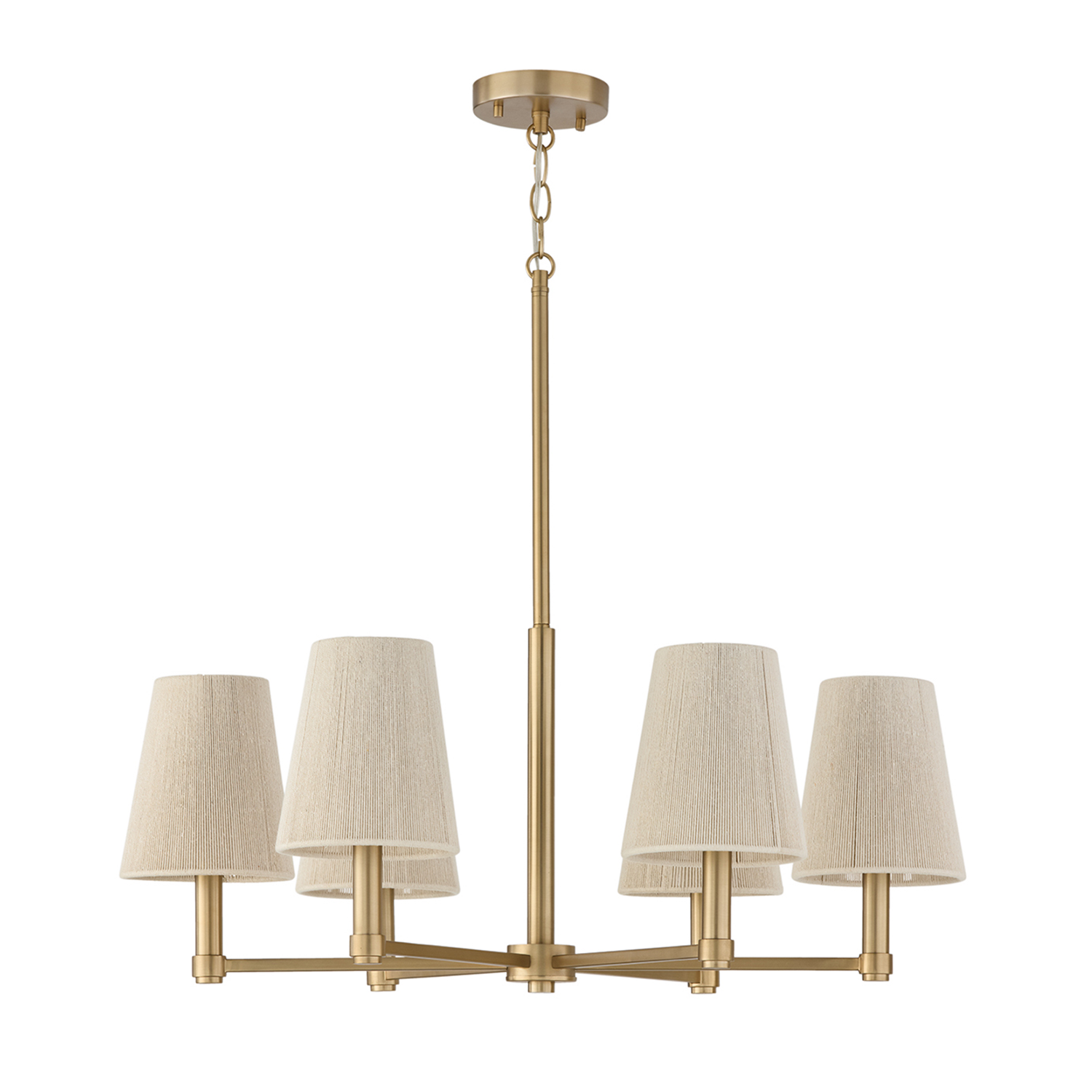 Evren 6 Light Chandelier 30", Matte Brass with Natural Rope