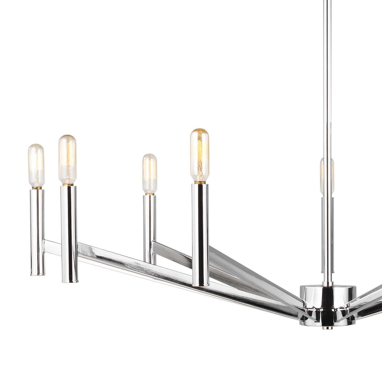 • Modern chandelier with chrome finish featuring clean straight lines for timeless appeal