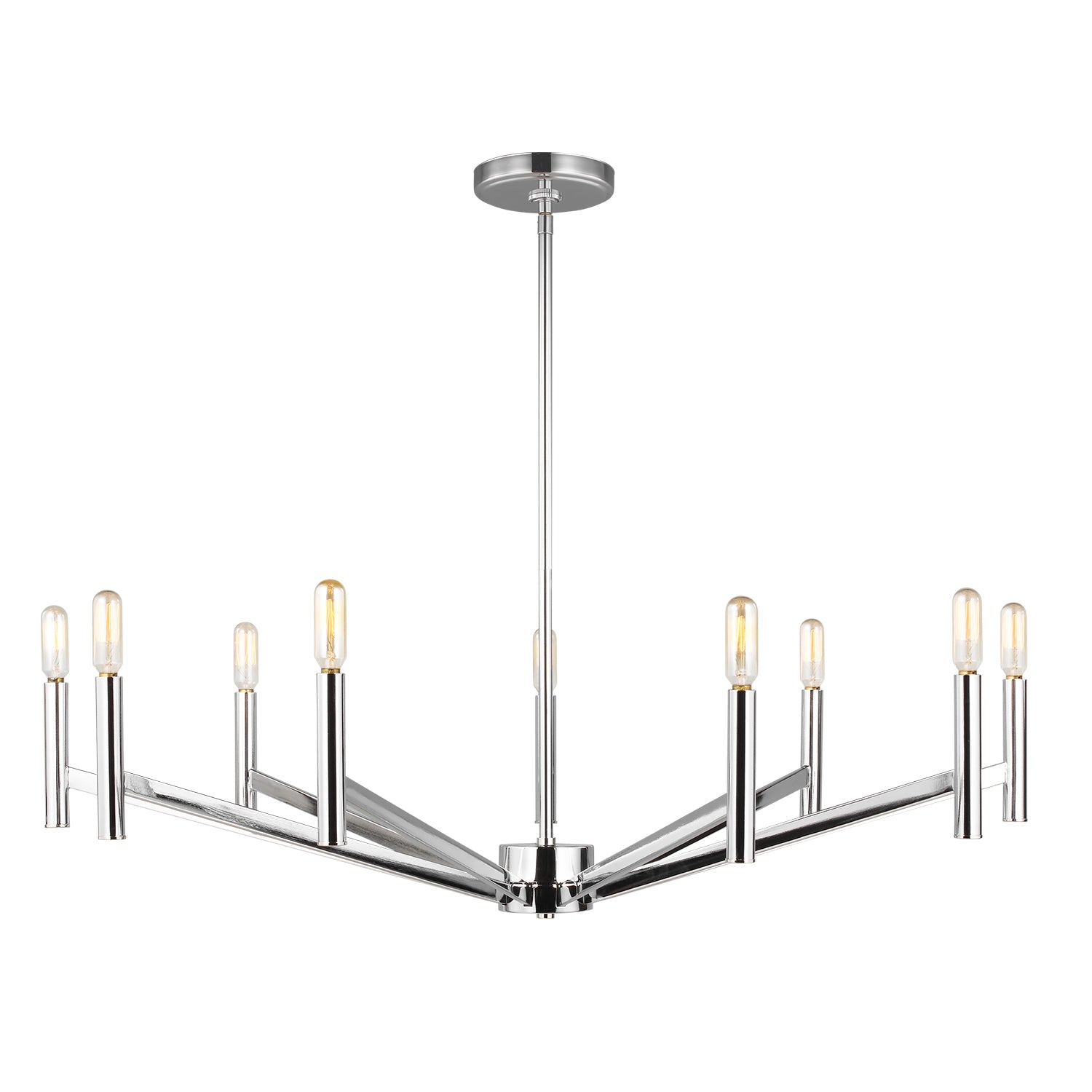 The Foster 9 Light Chandelier brings mid-century modern style to your space with its clean lines and minimalist design that supplies ample lighting for your daily needs. This thoughtfully designed fixture captures the essence of mid-century aesthetics through its simple straight-line construction and understated elegance, creating timeless appeal that enhances any interior. Perfect for grand dining areas, large kitchens, and expansive living spaces where functional lighting meets classic design. The chrome finish provides bright sophistication that complements both vintage-inspired and contemporary interiors while the nine-light configuration delivers enhanced illumination. With its enduring mid-century appeal and quality construction, this chandelier brings refined elegance to any environment.