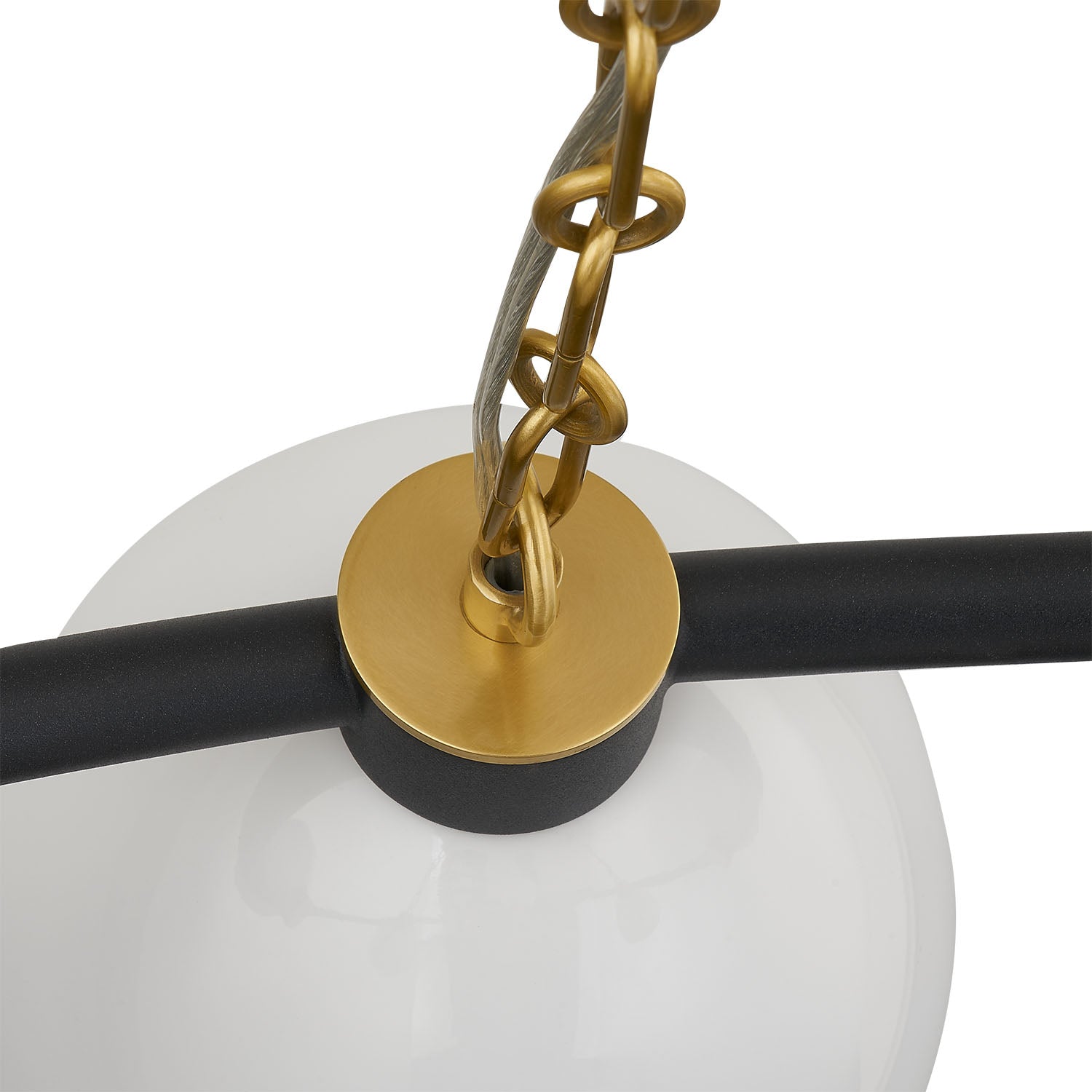• The refined two-toned finish of aged brass and textured black enhances the fixture's modern, sophisticated form