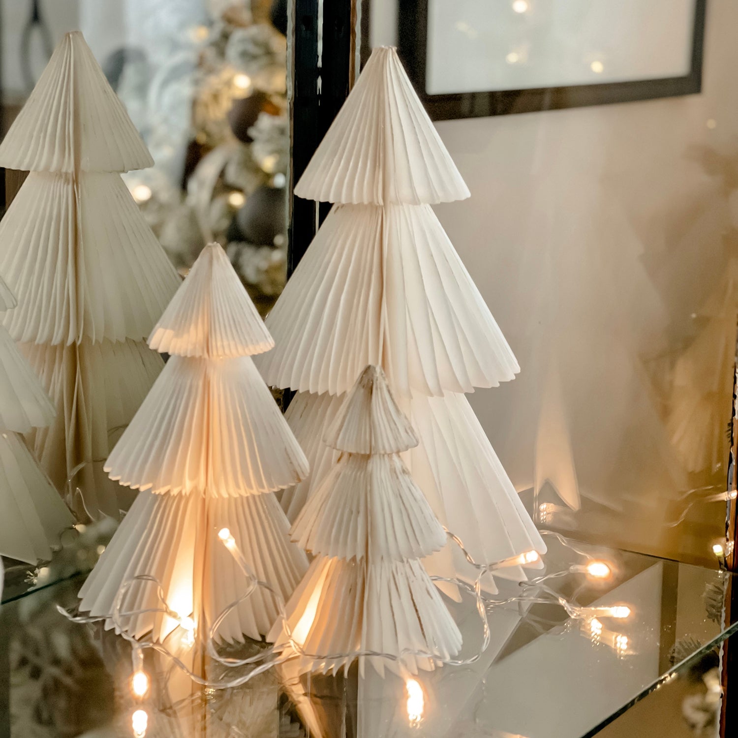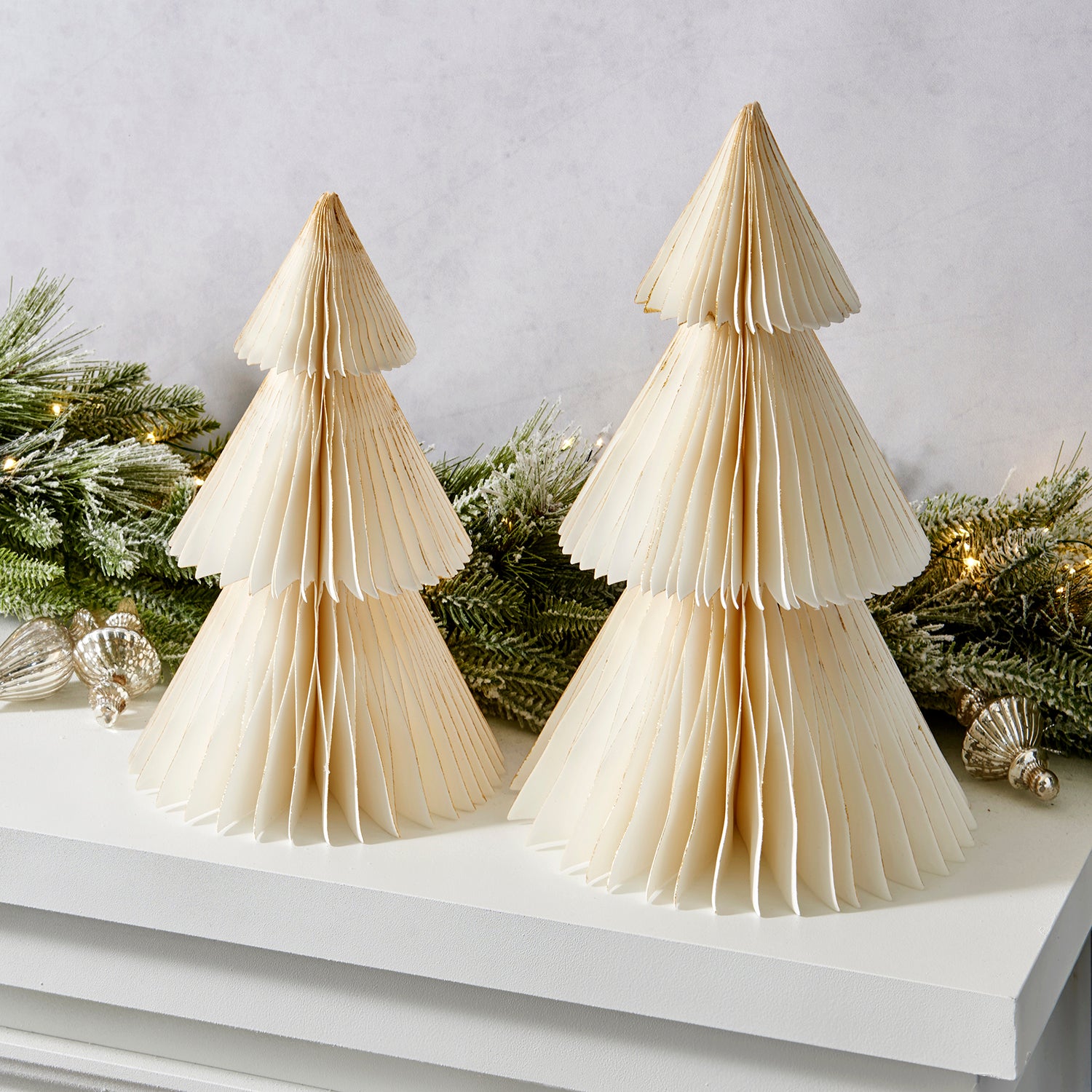 Pleated Paper Christmas Trees, Large Set of 2, Ivory