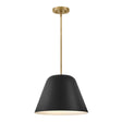 The Ursa Pendant 16" makes a sophisticated statement with its sleek, minimalist form and bold scale. The wide, slightly tapered shade features clean, continuous lines, directing a brilliant and focused light downward. This pendant is thoughtfully designed to provide effective task illumination, making it an ideal choice for a kitchen island, dining nook, or office space. With its ETL dry rating and sloped ceiling compatibility, it offers both functional beauty and versatile appeal. The sophisticated two-toned finish, featuring Matte Black and Satin Brass, creates a dynamic contrast that results in a look of enduring style and timeless elegance. This striking collection delivers enduring style and a perfect blend of elegance and simplicity.