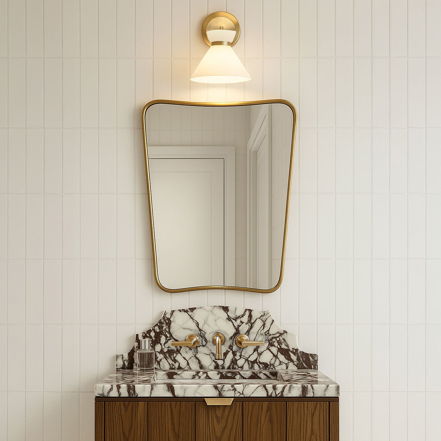 Cori Wall Sconce, Brushed Brass and Milk Glass