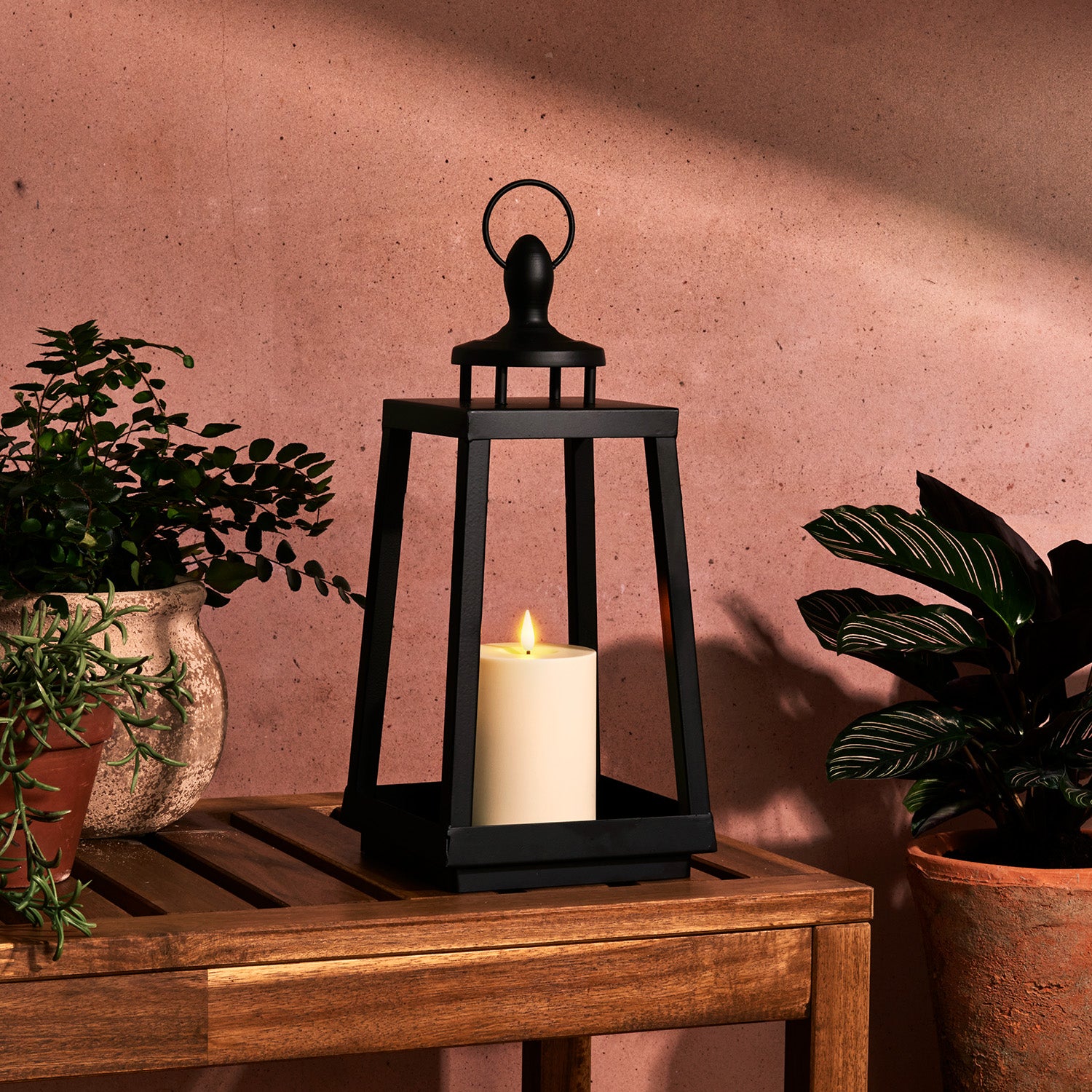 This lantern is compatible with our Infinity Wick candle remote (sold separately).