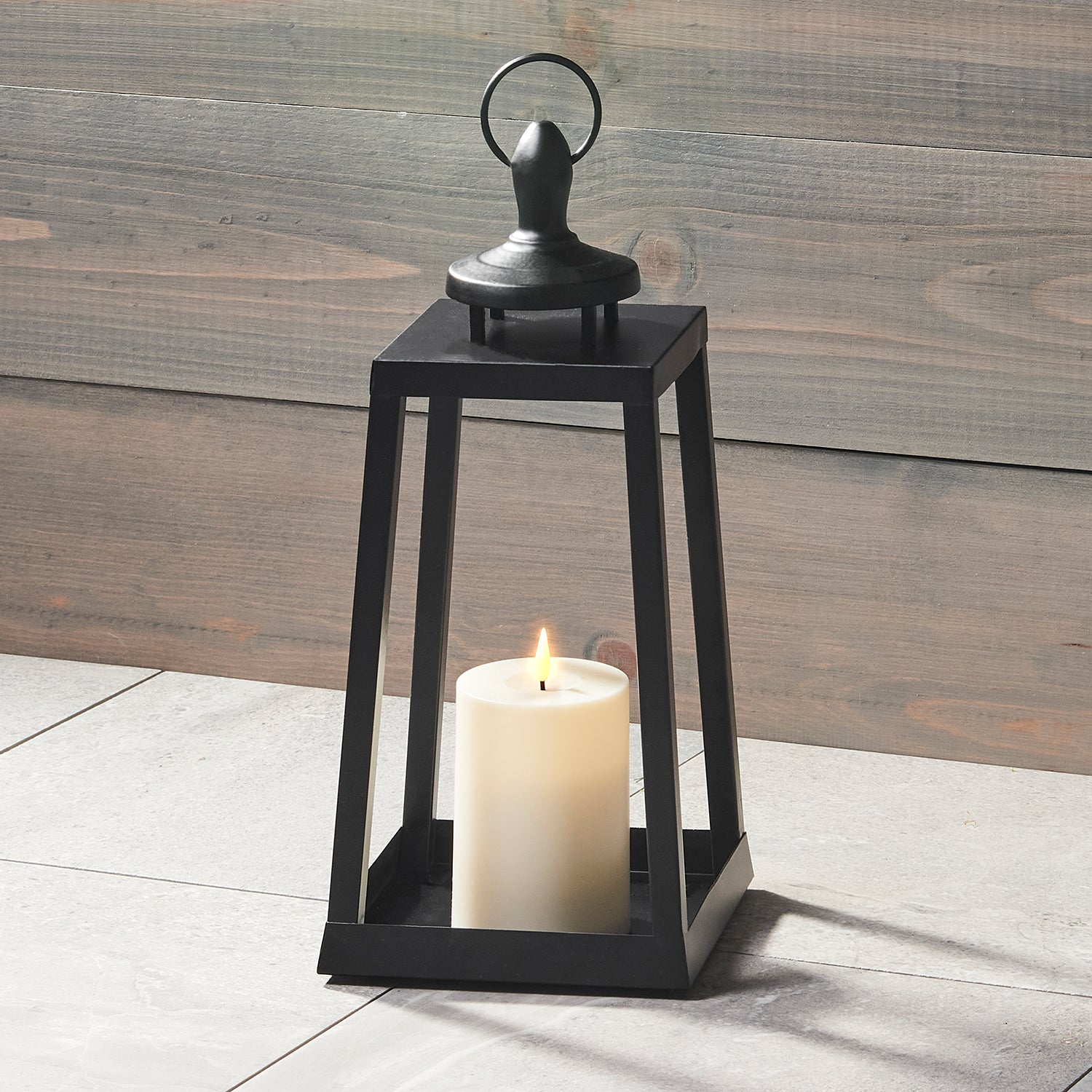 • One charming open frame lantern, housing an ultra-realistic flameless resin candle that features our exclusive Infinity Wick flame technology