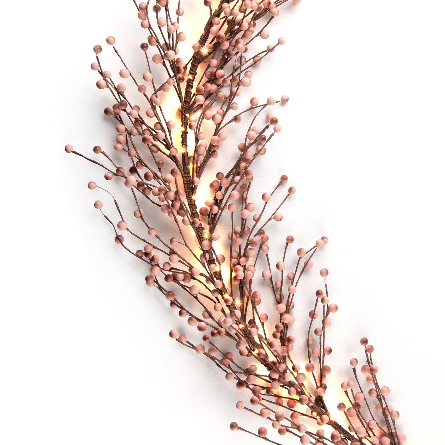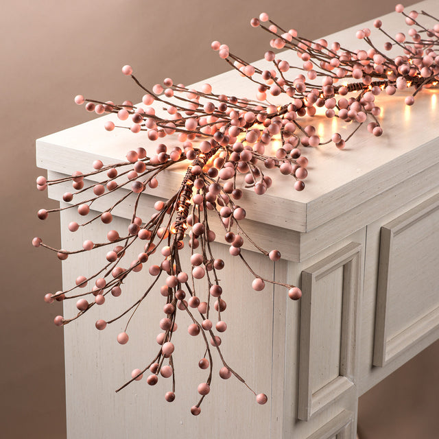 • 6 ft. branch garland with romantic pink berries and pre-strung with bright white LED lights