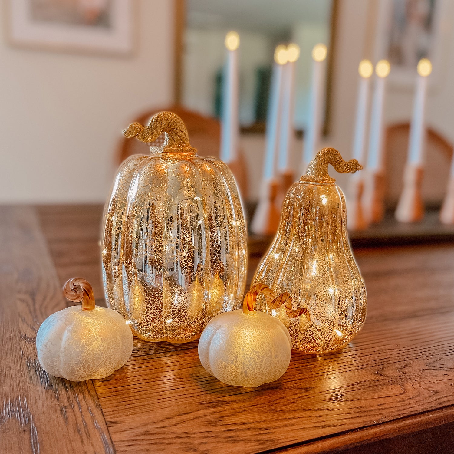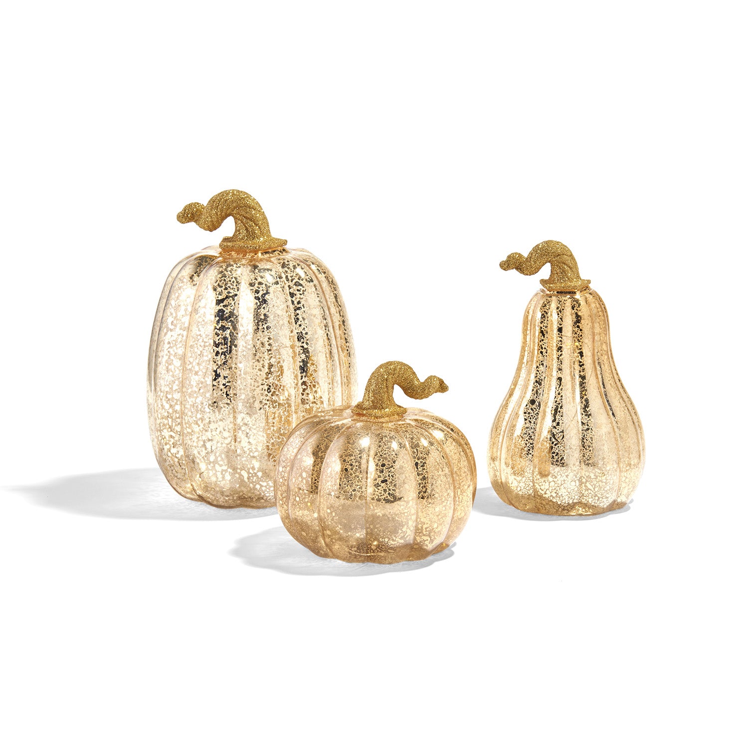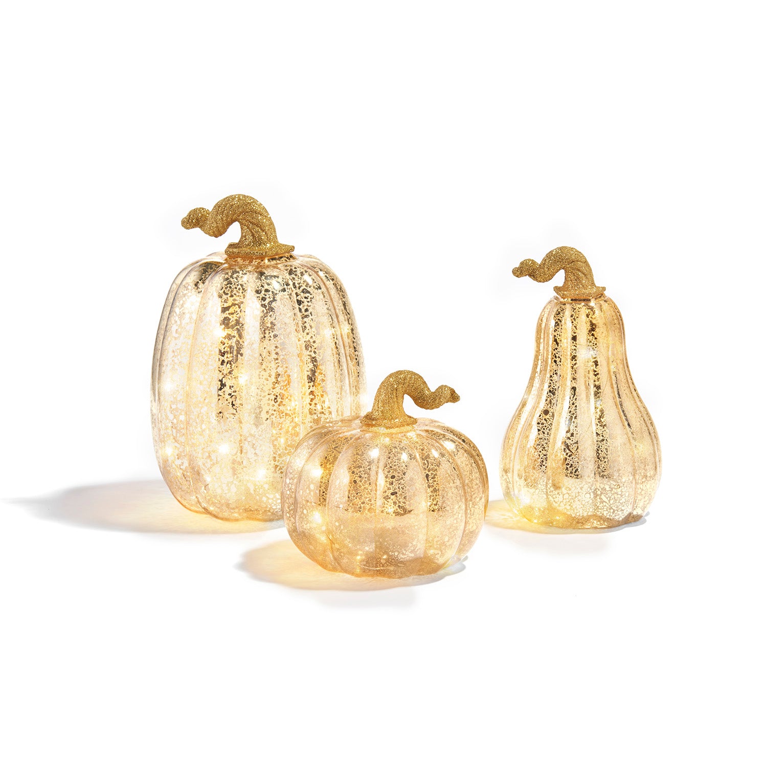 Gold LED Pumpkins with Mercury Glass Finish, Set of 3