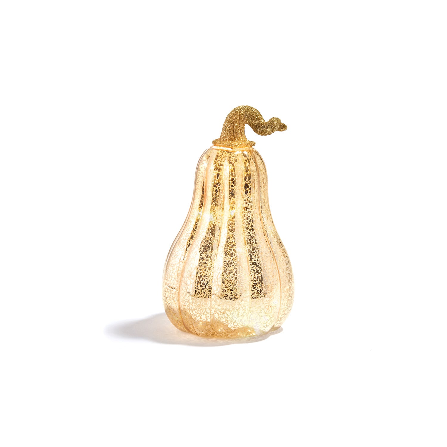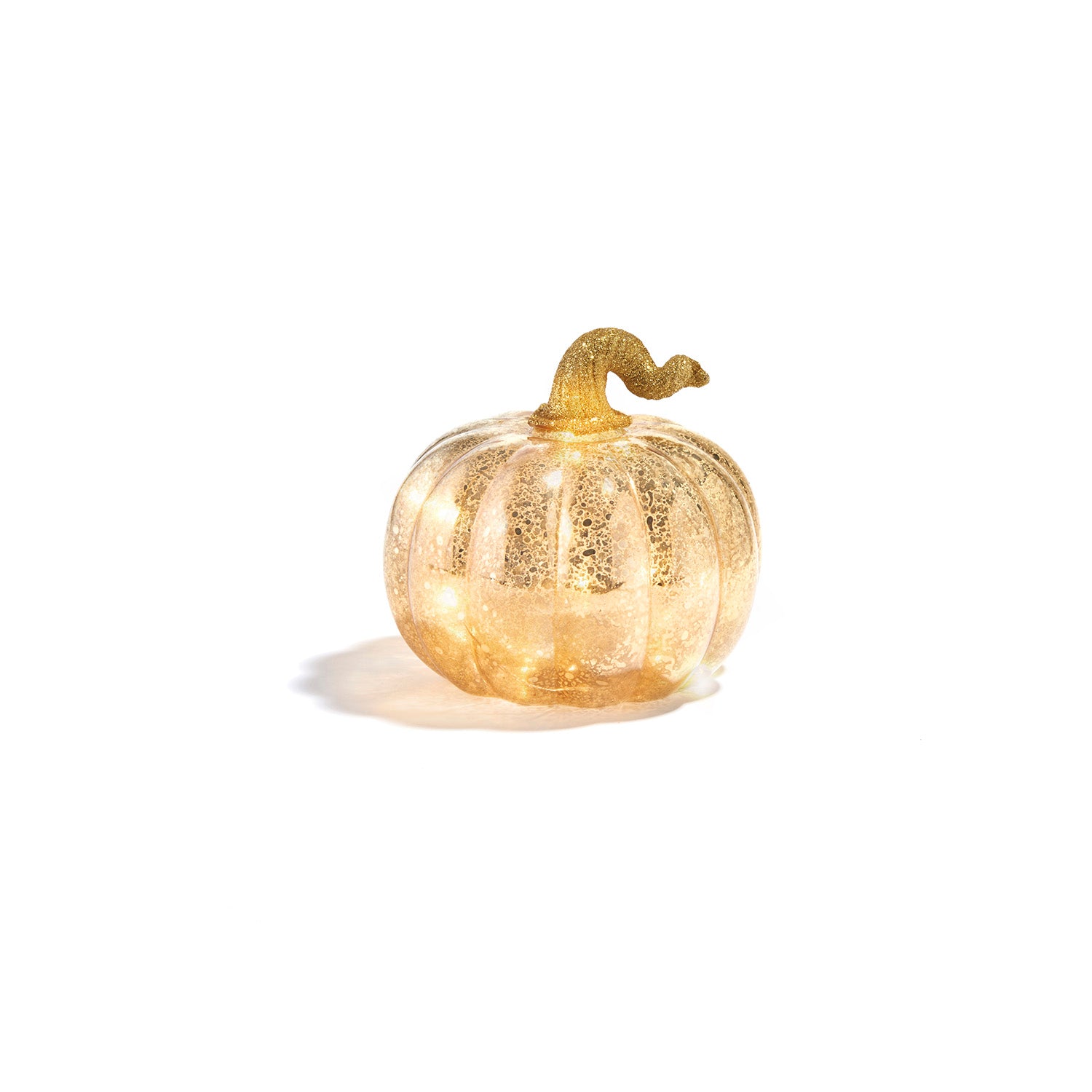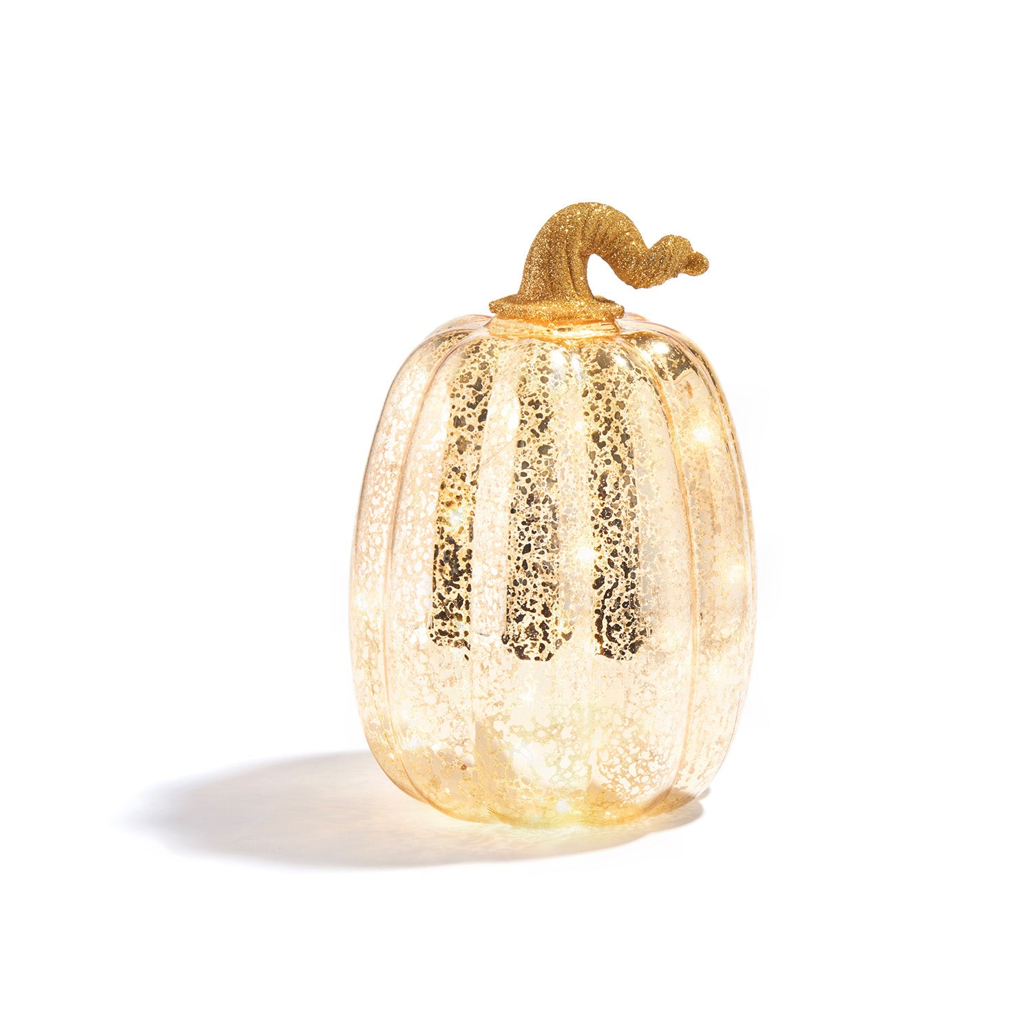 Gold LED Pumpkins with Mercury Glass Finish, Set of 3