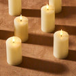 This candle set includes four elegant votive candles measuring 2" x 3" and a convenient six-button remote control. This candle set is a beautiful, versatile addition to any decor, boasting real-wax exteriors in a neutral ivory color, and a classic flat-top design. The realistic aesthetic and included remote with timer make the Infinity Wick Votive Candles an ideal gift for Christmas, housewarming, or for the newlyweds in your family. Place among botanicals to accentuate a floral centerpiece, group together on a side table or mantel, or distribute around a room to bring a touch of cheer to shadowy corners. Perfect for home, weddings, churches, restaurants, and events.