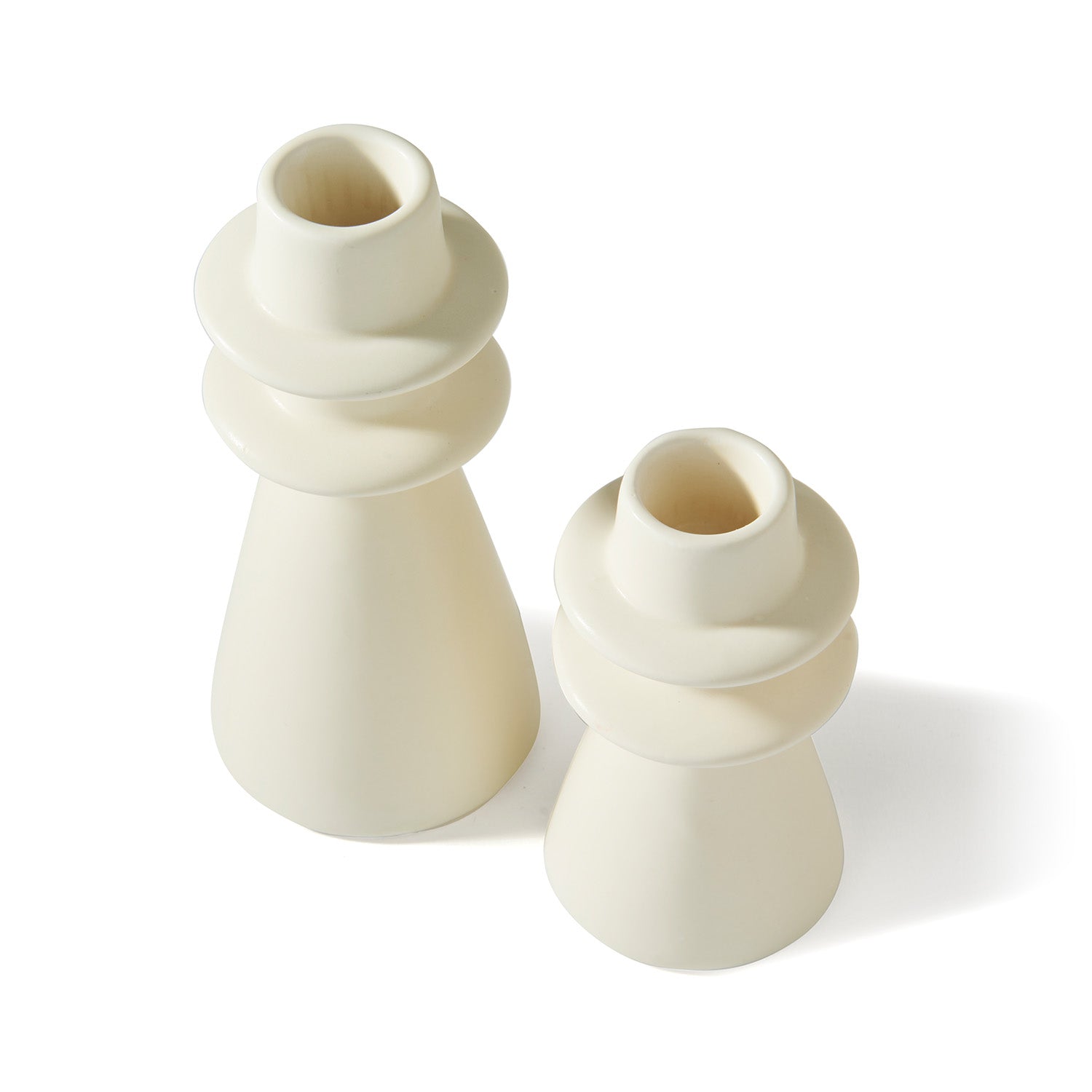 June Porcelain Taper Candle Holders, Set of 2, Matte Ivory