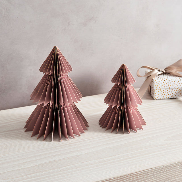 Pleated Paper Christmas Trees, Small Set of 2, Dusty Rose