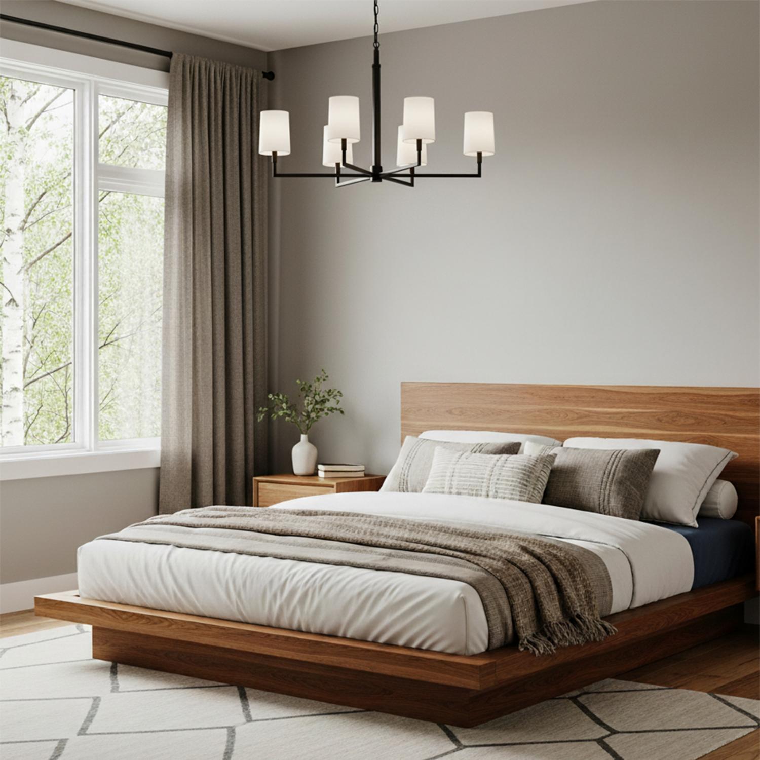 The Andrew 4 Light Chandelier seamlessly blends modern minimalism with vintage charm, showcasing clean, structured lines and simplicity that creates timeless aesthetic appeal throughout the space. This sophisticated 36" chandelier features thoughtfully balanced proportions with understated details that create a refined yet casual elegance, perfect for larger dining rooms, grand entryways, living spaces, and areas seeking substantial statement lighting that feels at home in both contemporary and traditional interiors. The aged iron finish brings sophisticated depth while the white linen shades deliver soft, even illumination with understated refinement. With its damp-rated construction and substantial hanging range, this beautifully designed chandelier elevates any space with timeless sophistication and enduring style.