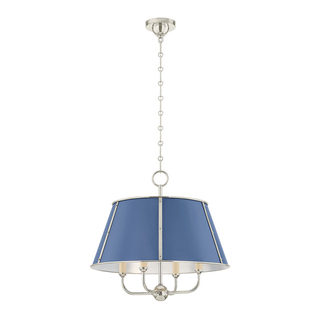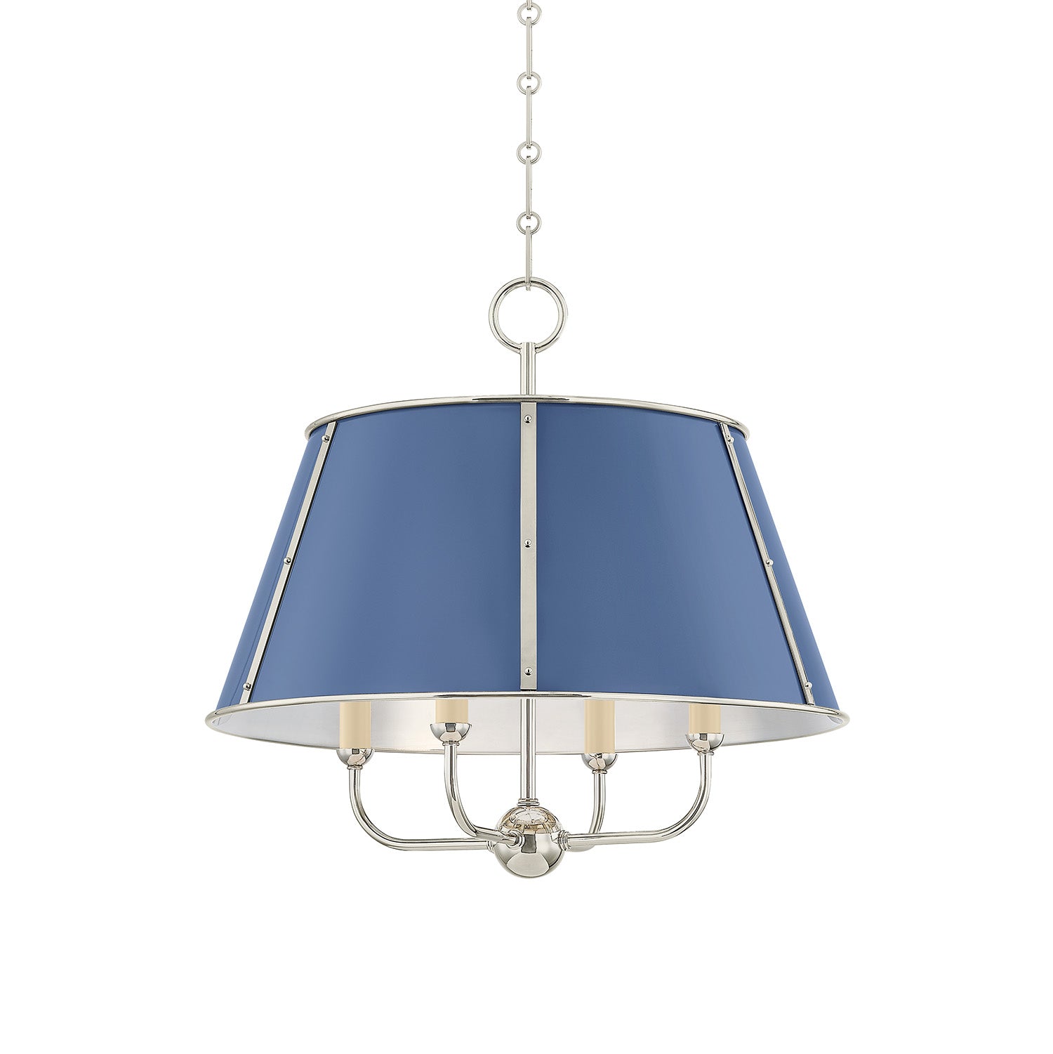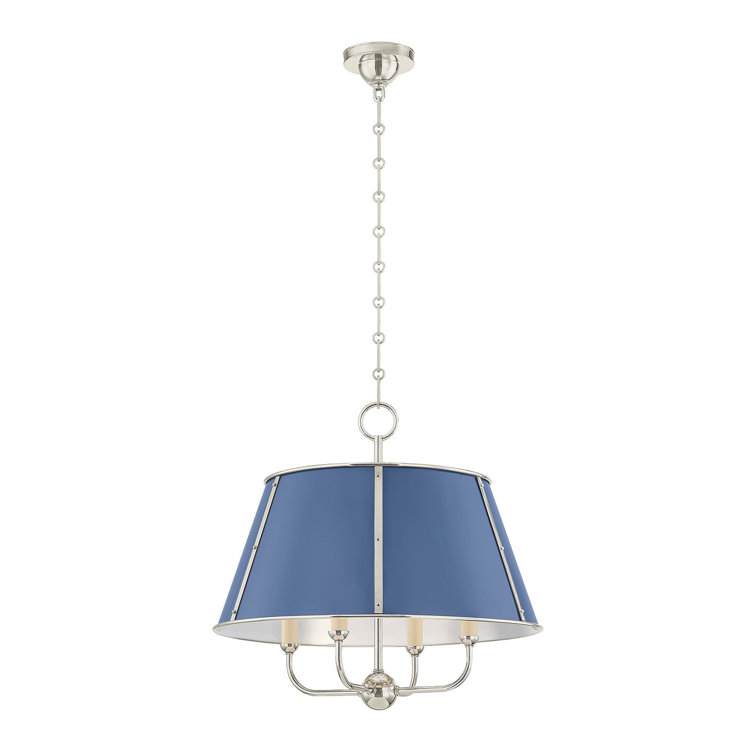 Avery 4 Light Large Pendant 20", Dutch Blue and Polished Nickel