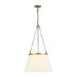 The Adrian Pendant features a timeless design with a white linen empire shade suspended by decorative chains from an Antique Brass frame. This elegant pendant light showcases classic 1920s-inspired details with its traditional shade shape and warm metallic accents. Measuring 18" in diameter, the Adrian creates soft, ambient illumination that's ideal for dining rooms, entryways, or living spaces. The combination of the crisp white shade and brass hardware brings a touch of refined vintage elegance to any interior, perfectly balancing traditional charm with contemporary sensibility.