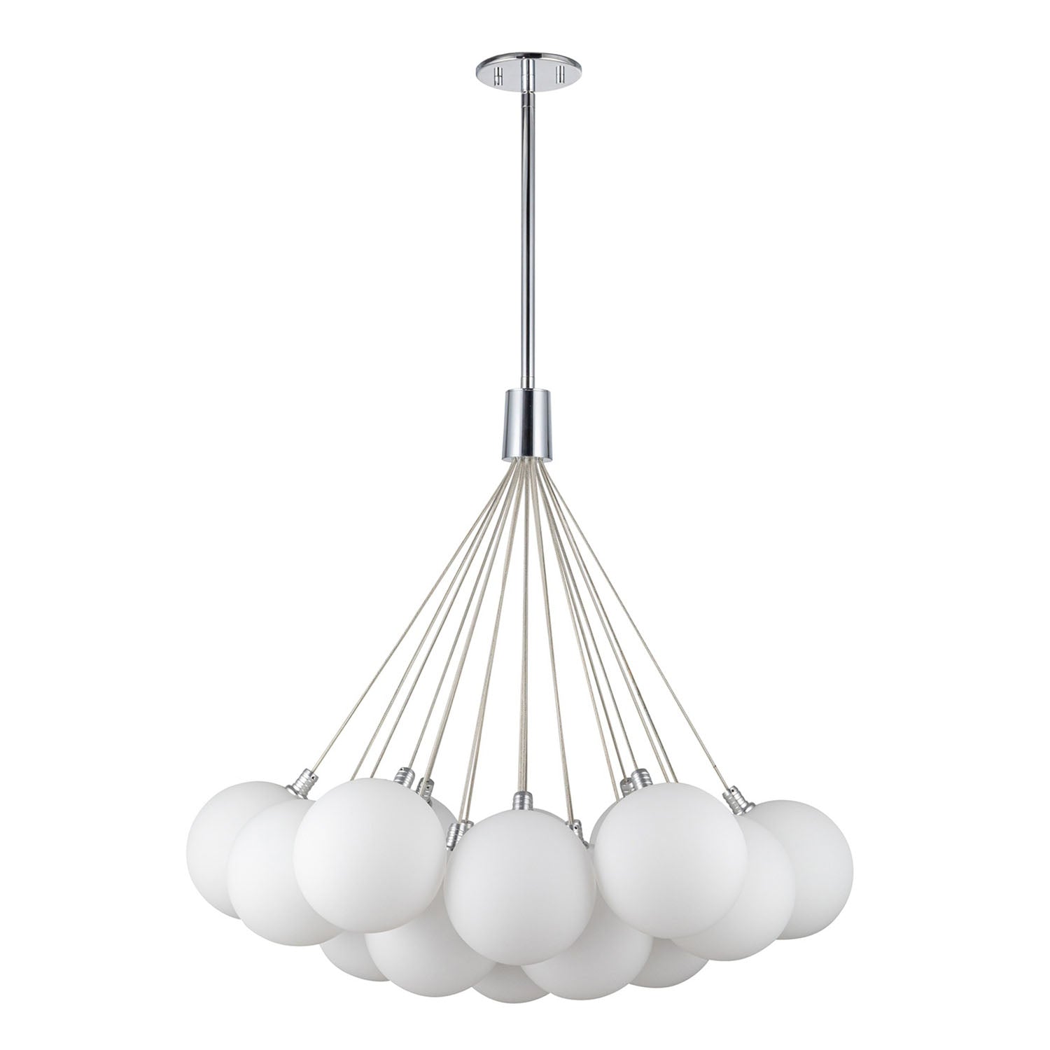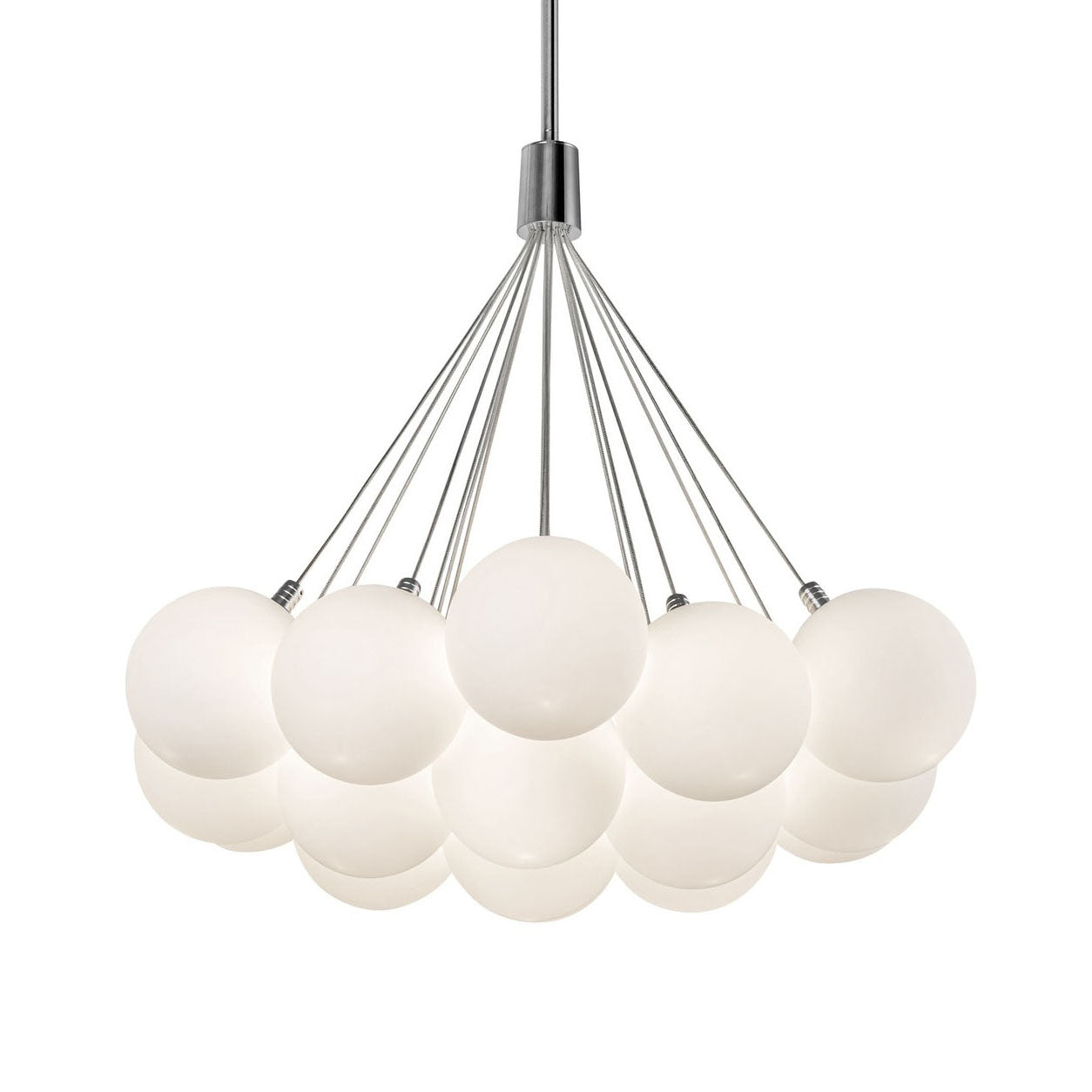 • Modern cluster chandelier design with nineteen opal glass shades for dramatic sophistication