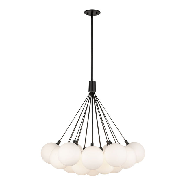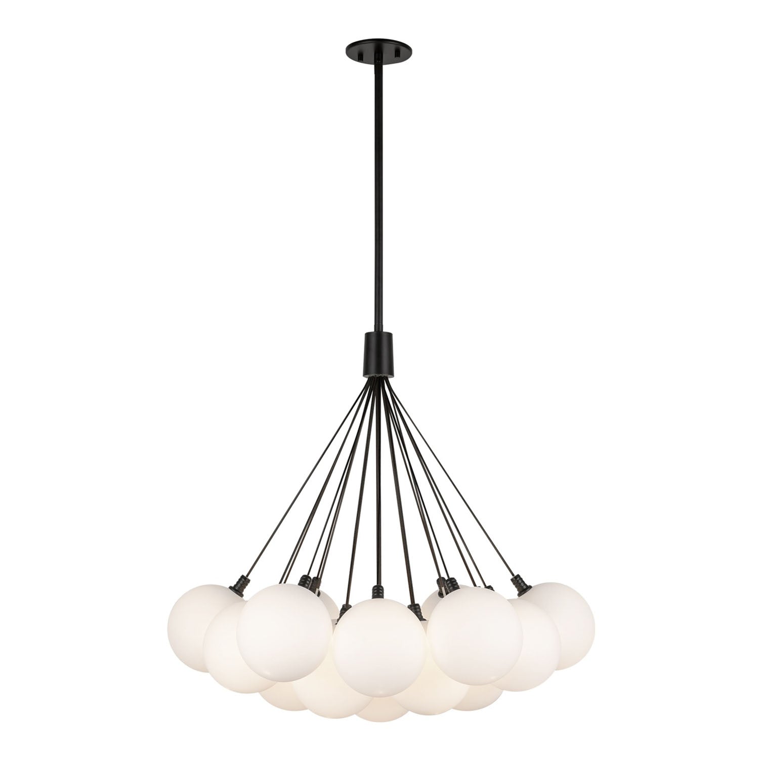 Soren 19 Light LED Chandelier 28", Matte Black and Opal Glass