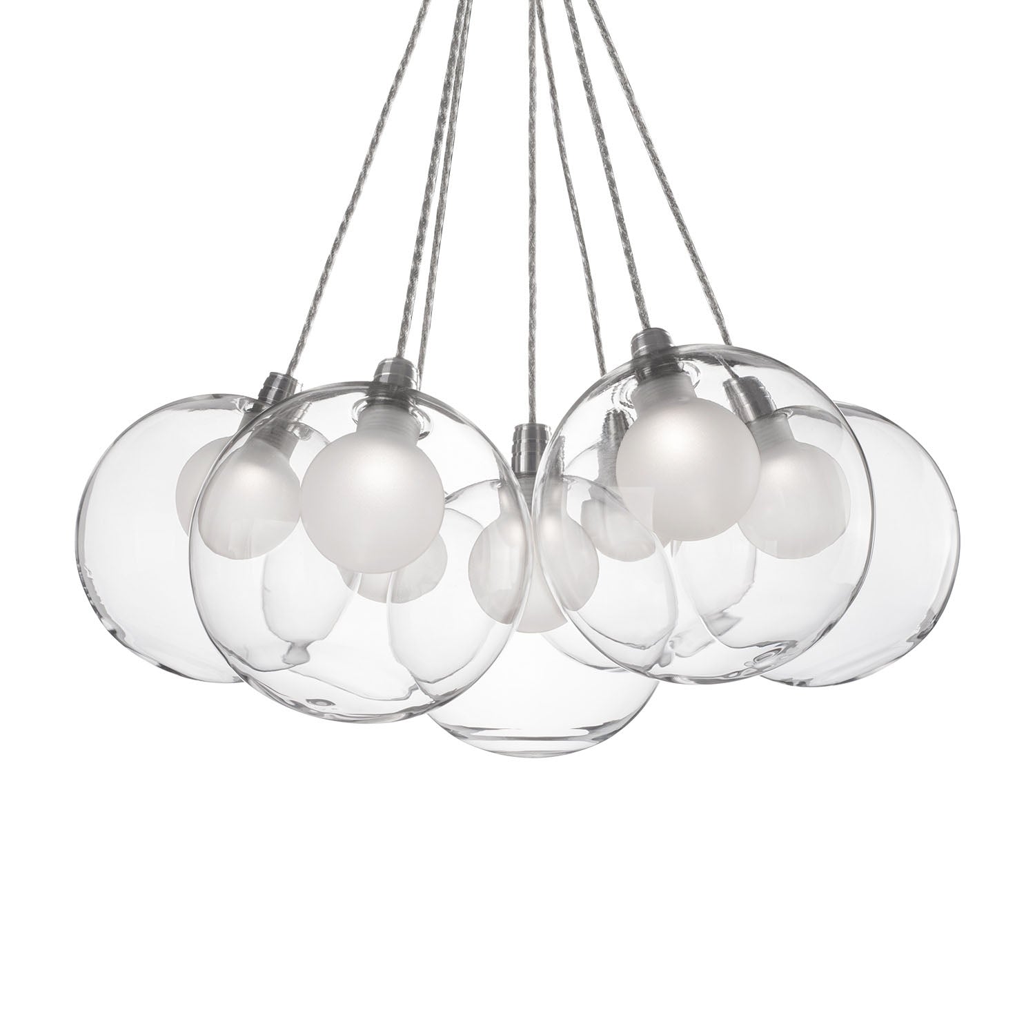• Modern cluster chandelier design with seven clear glass shades for sleek sophistication