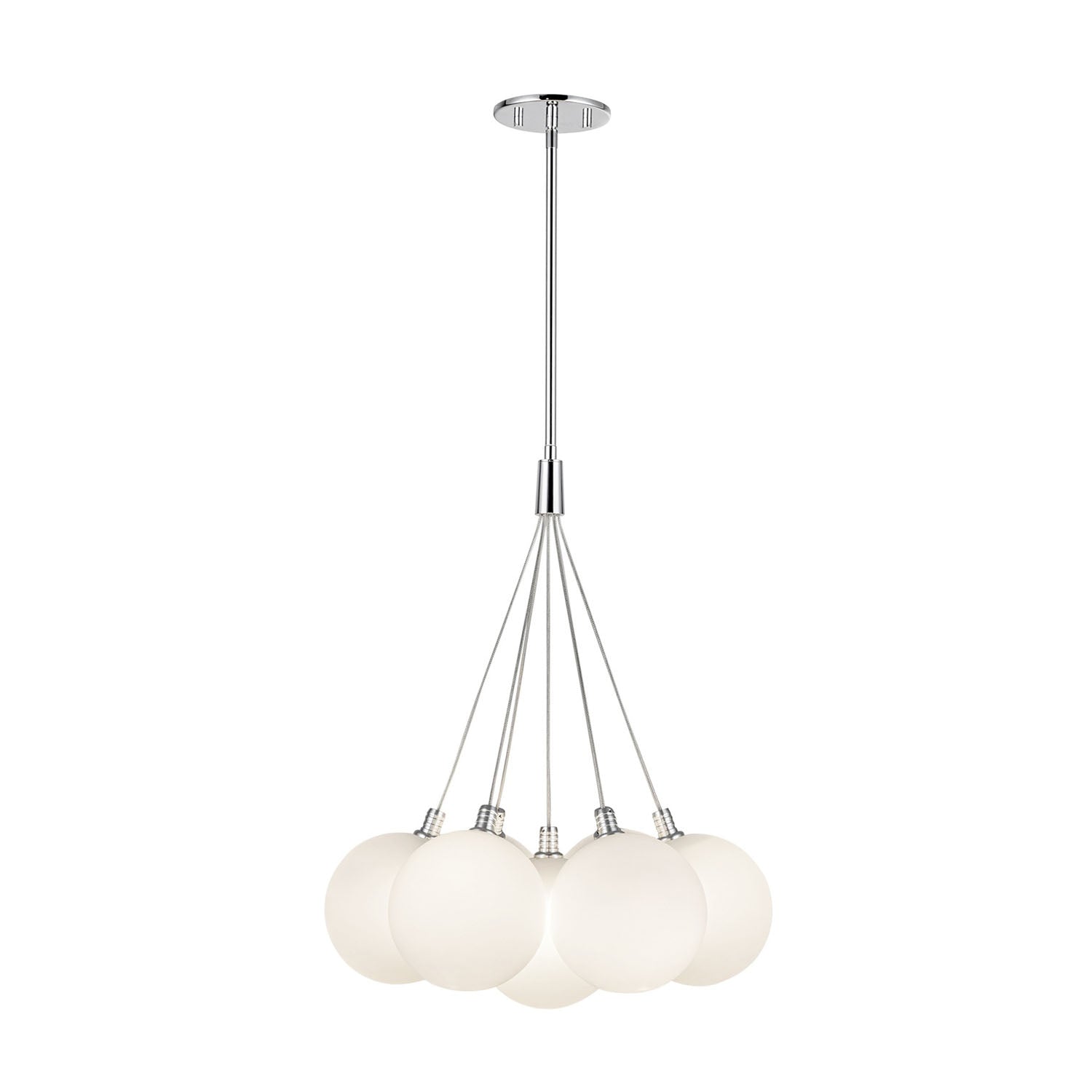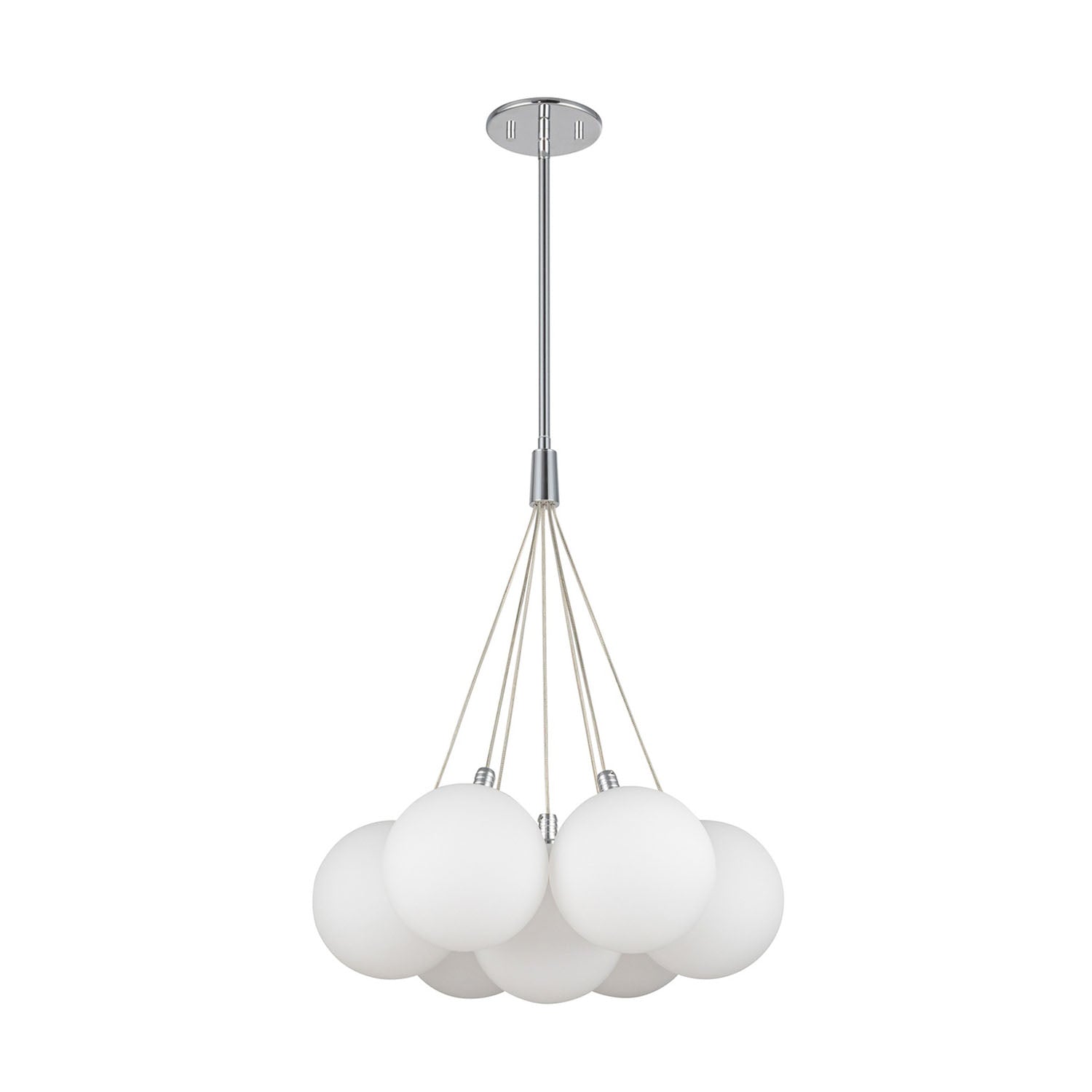 • Modern cluster chandelier design with seven opal glass shades for sleek sophistication