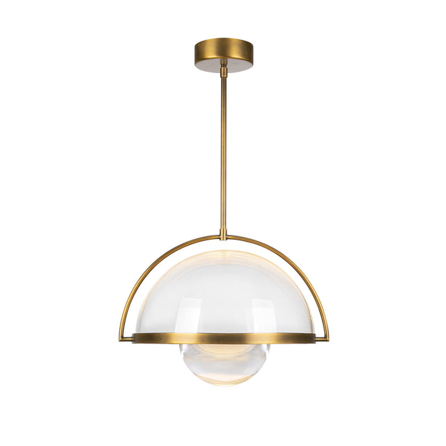 The Wilton LED Pendant brings modern sophistication to any interior space with its captivating symphony of modern whimsy and timeless elegance. This striking fixture features dual glass shades adorning both top and bottom, enveloping integrated LED lights within its warm aged brass frame that reinvents the classic mid-century dome pendant. The dual glass design creates beautiful light distribution perfect for dining rooms, kitchens, living spaces, and interiors seeking vintage charm with contemporary sensibility. The integrated LED technology provides warm 3000K illumination at 90 CRI through the clear glass, producing exceptional color rendering with energy-efficient performance that marries vintage appeal with modern functionality. At 16" wide with adjustable hanging height and substantial presence, this pendant makes a masterpiece statement that illuminates your space with mid-century elegance and contemporary performance.