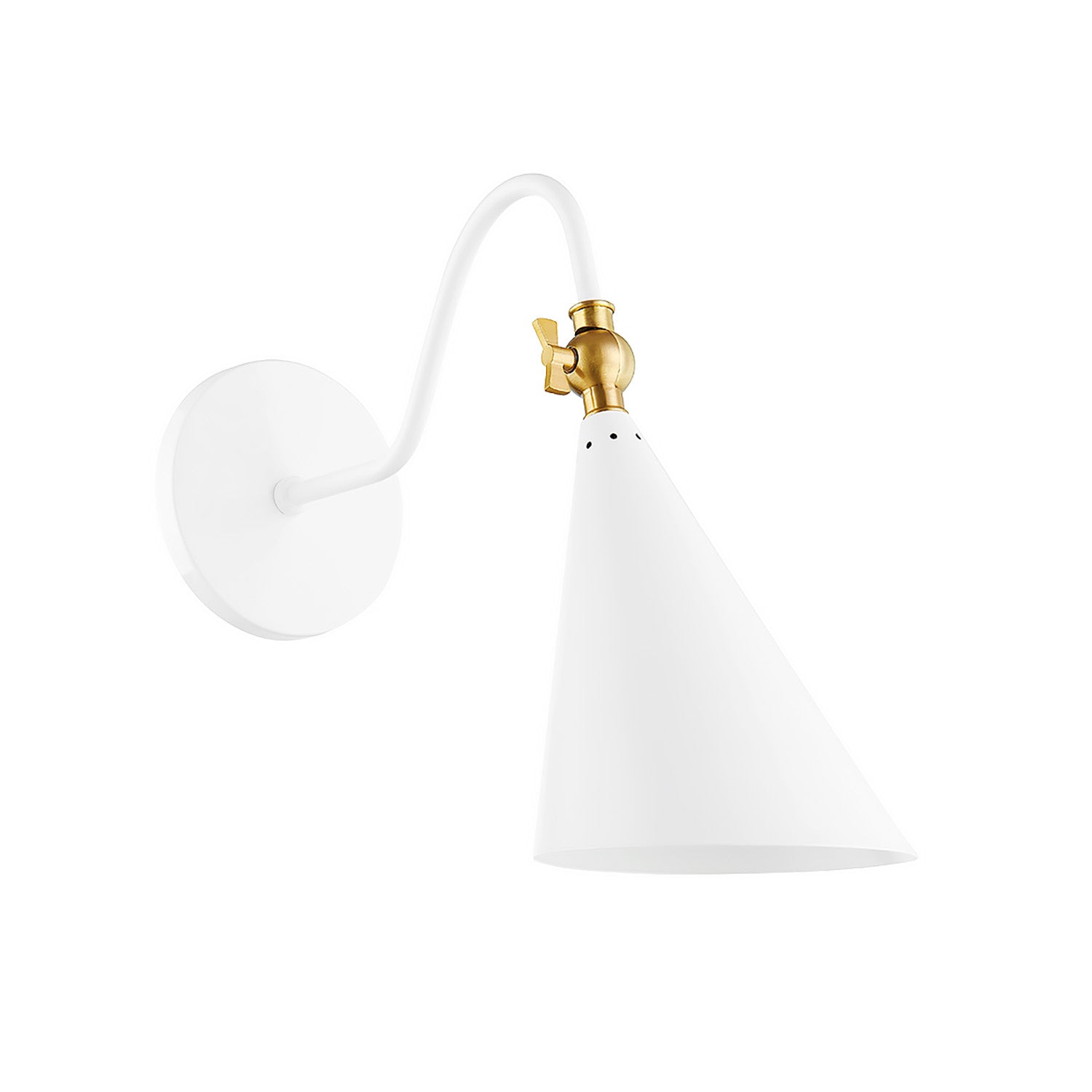 Faye Adjustable Wall Sconce, White with Aged Brass