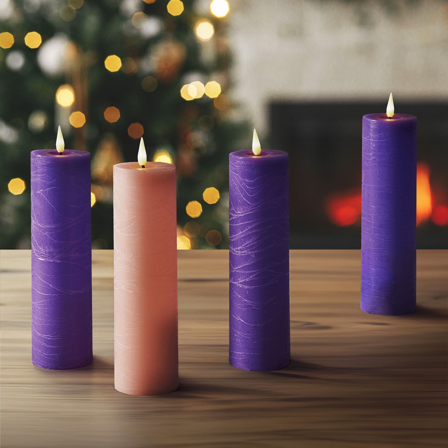 Infinity Wick Advent 7" Distressed Slim Pillar Candles, Set of 4