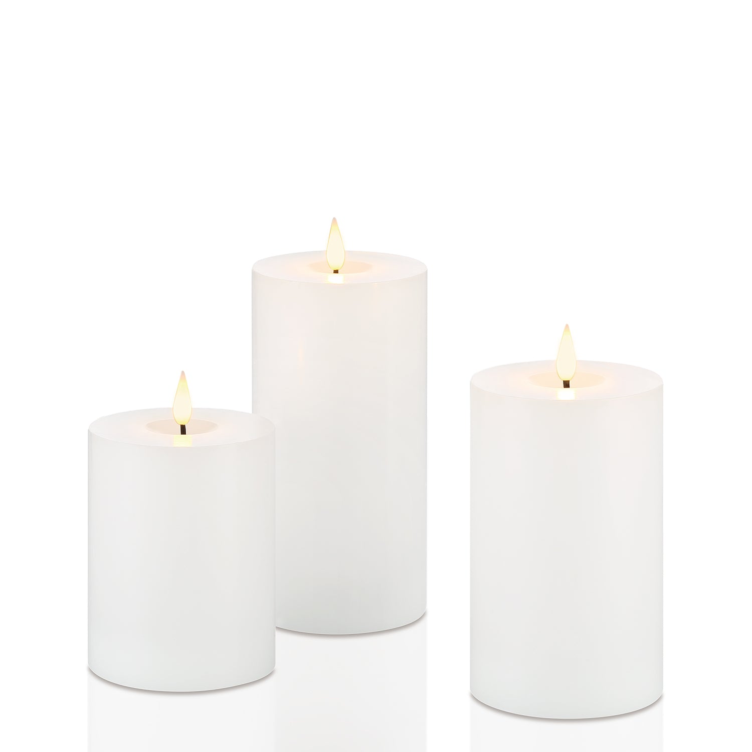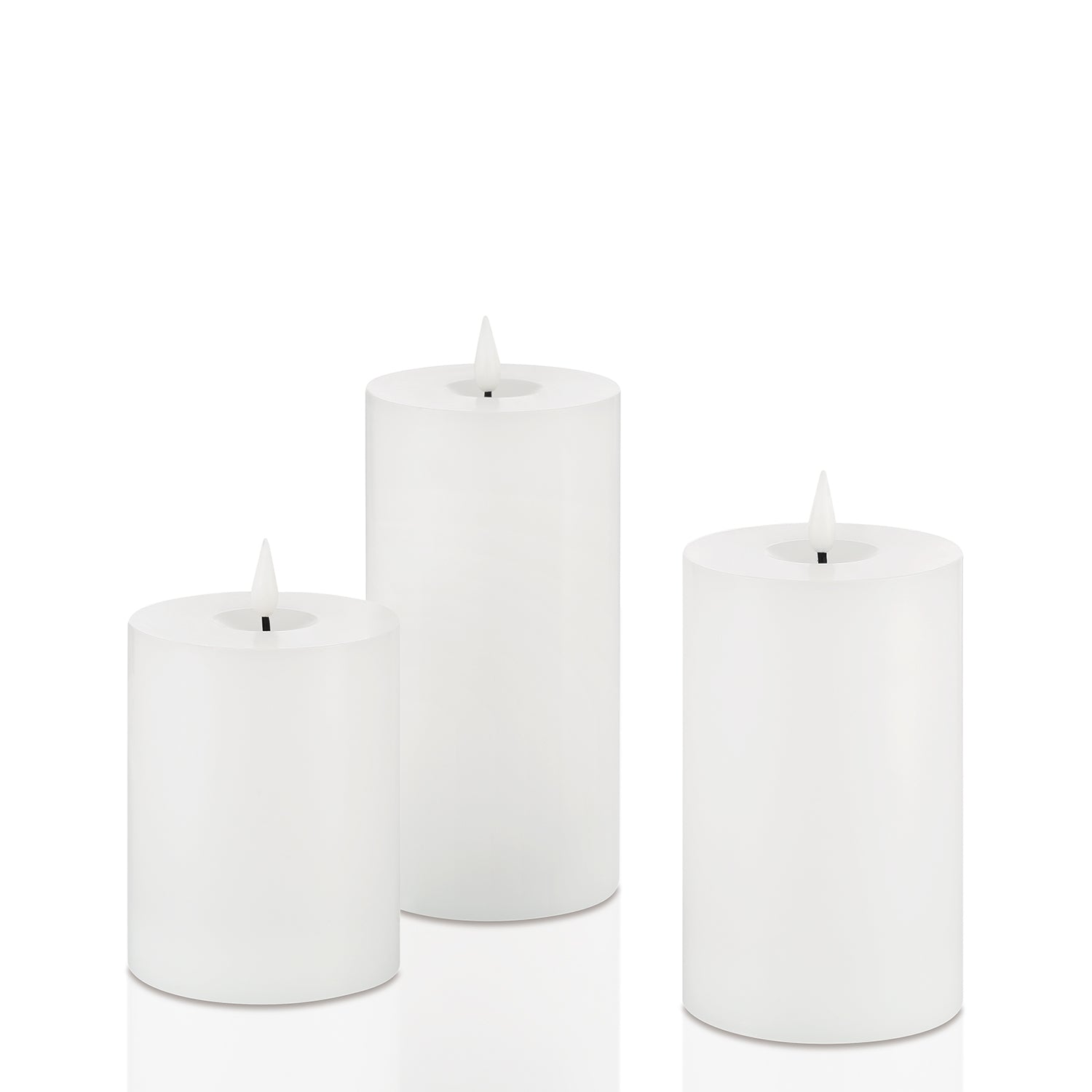 Infinity Wick White Pillar Candles, 3" Multipack, Set of 3