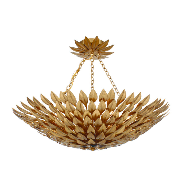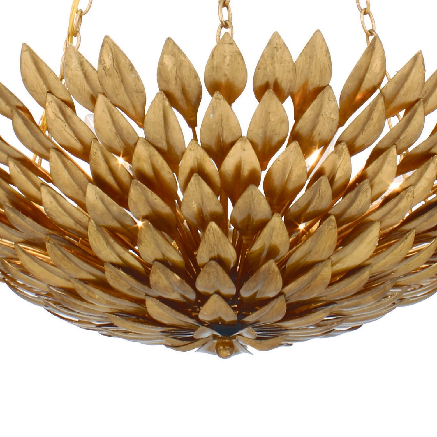 The Alysa Semi-Flush showcases intricate craftsmanship with its handcrafted wrought iron leaves, forming a striking floral silhouette. Finished in warm antique gold, it adds sophistication while maintaining a light, airy presence. With a generous 24.5" diameter, this fixture makes a statement in dining rooms, living spaces, or bedrooms while providing ample illumination. Its semi-flush design offers a balance of elegance and practicality, bringing decorative artistry to any ceiling.