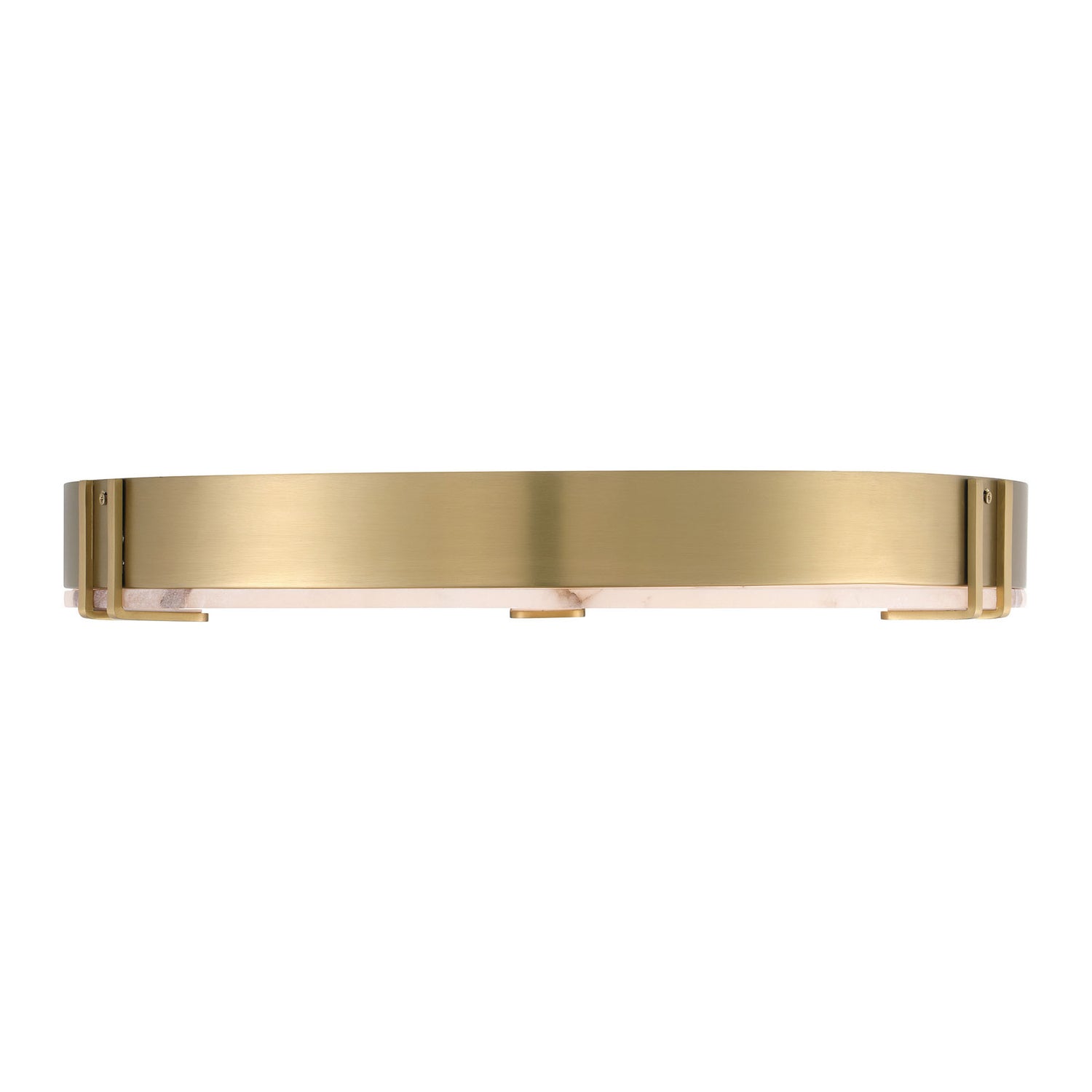 The Inez LED Flush Mount brings sophisticated warmth to any space with its striking alabaster stone design and warm brass finish. This captivating fixture features a beautifully crafted alabaster center, framed by a sleek brass rim, creating enhanced soft, even illumination perfect for bedrooms, hallways, or areas with lower ceilings. The brass and alabaster elements deliver contemporary luxury with refined elegance. At 22" in diameter with integrated LED technology, this flush mount makes a polished statement while providing decades of energy-efficient operation.