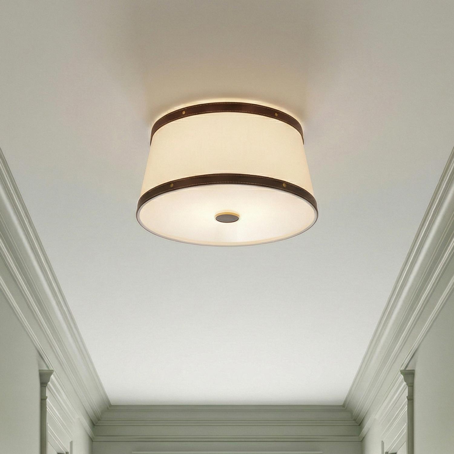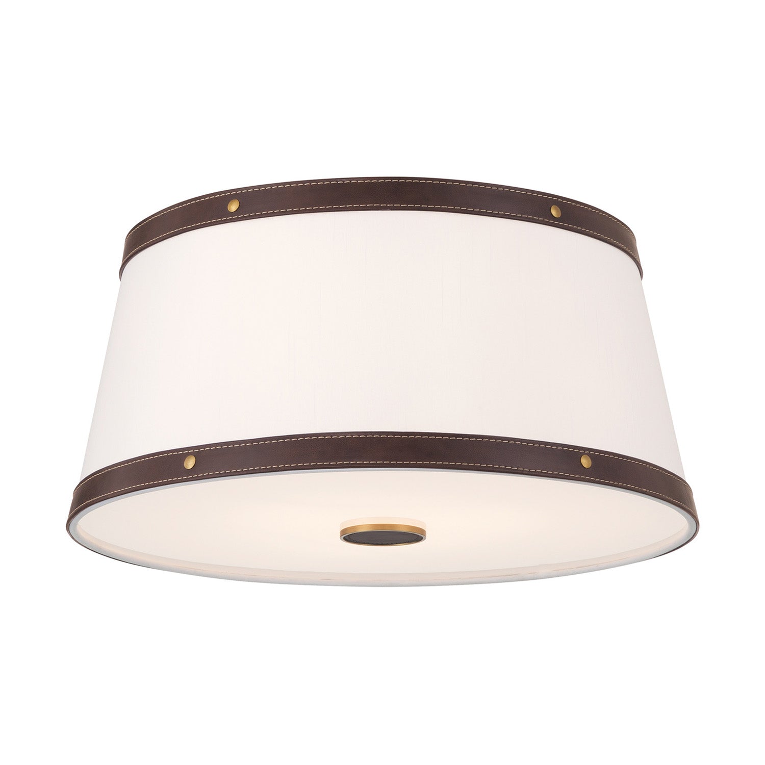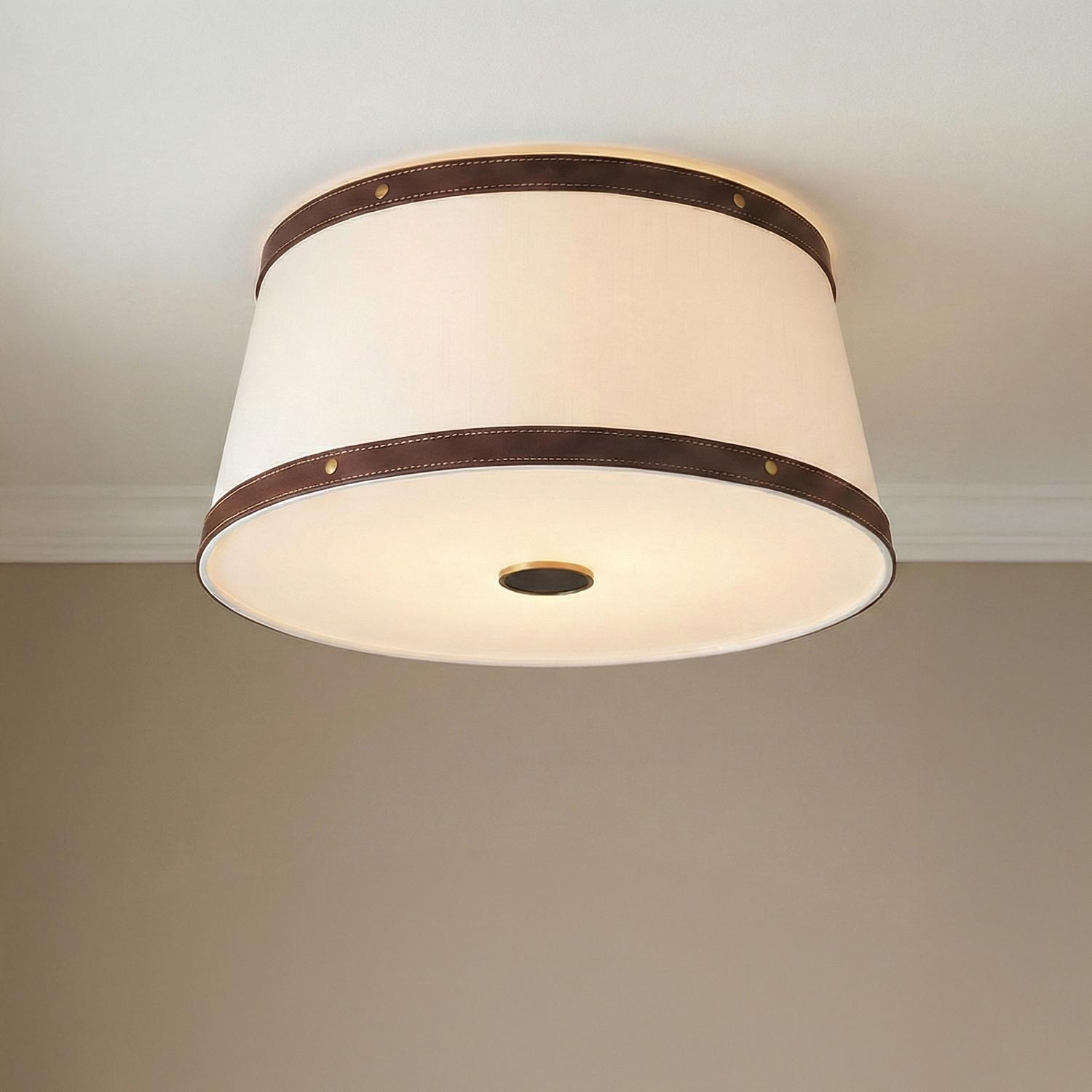 Spencer Flush Mount 17", Brass with Brown Leather Accents