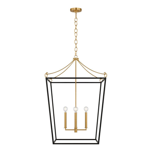 Cambria Extra Large Lantern Pendant 24", Matte Black and Modern Brass