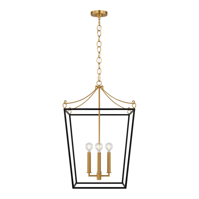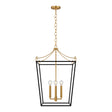 Cambria Medium Lantern Pendant 18", Matte Black and Modern Brass