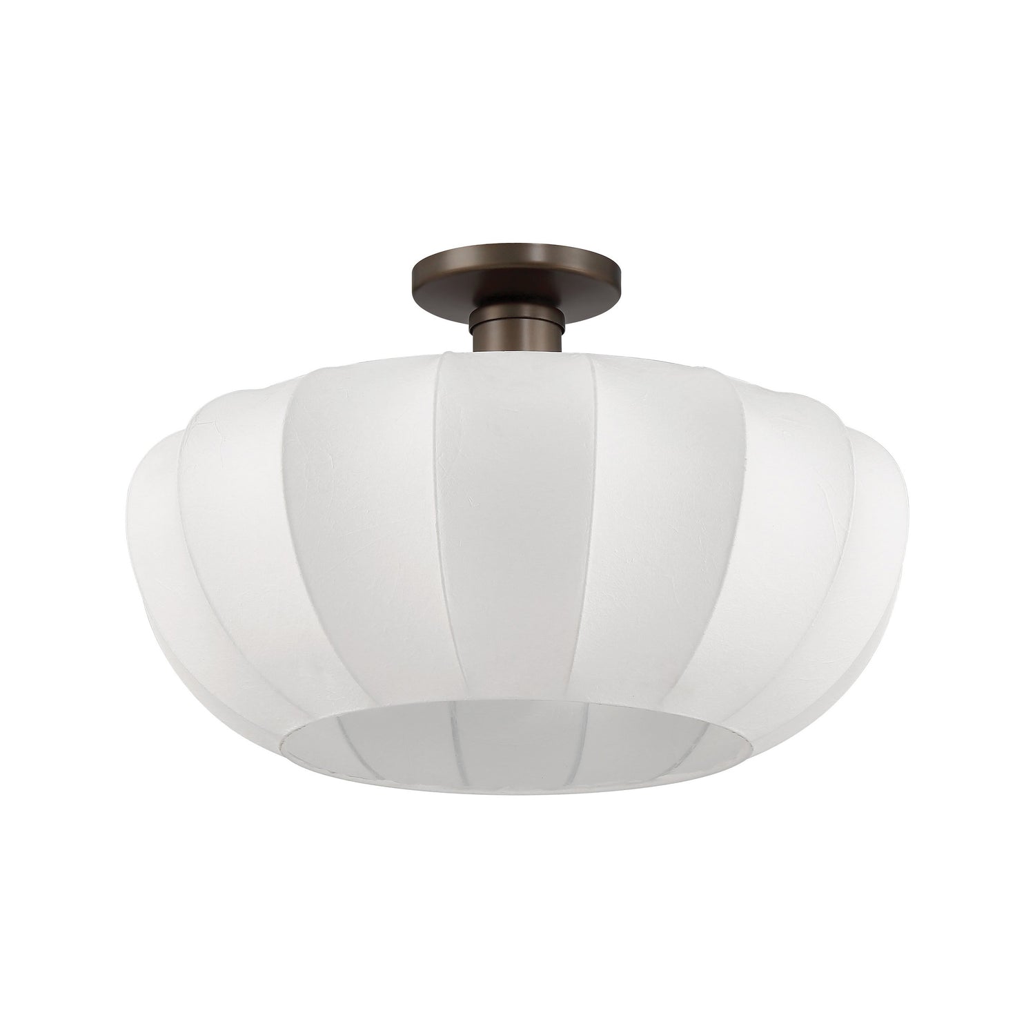 • Uma features a sculptural, mid-century inspired design defined by a white synthetic silk shade wrapped over a steel frame, to create a soft, undulating form