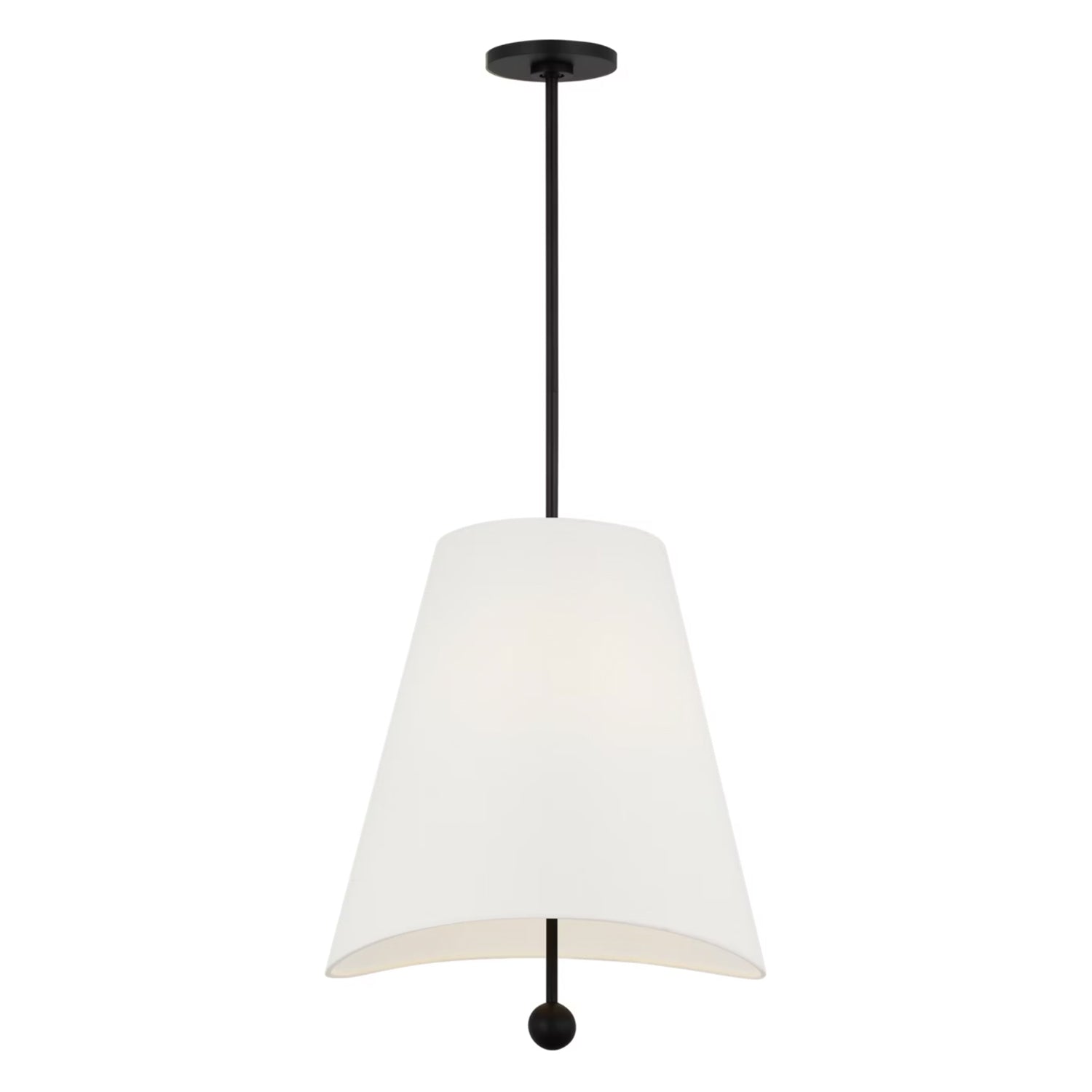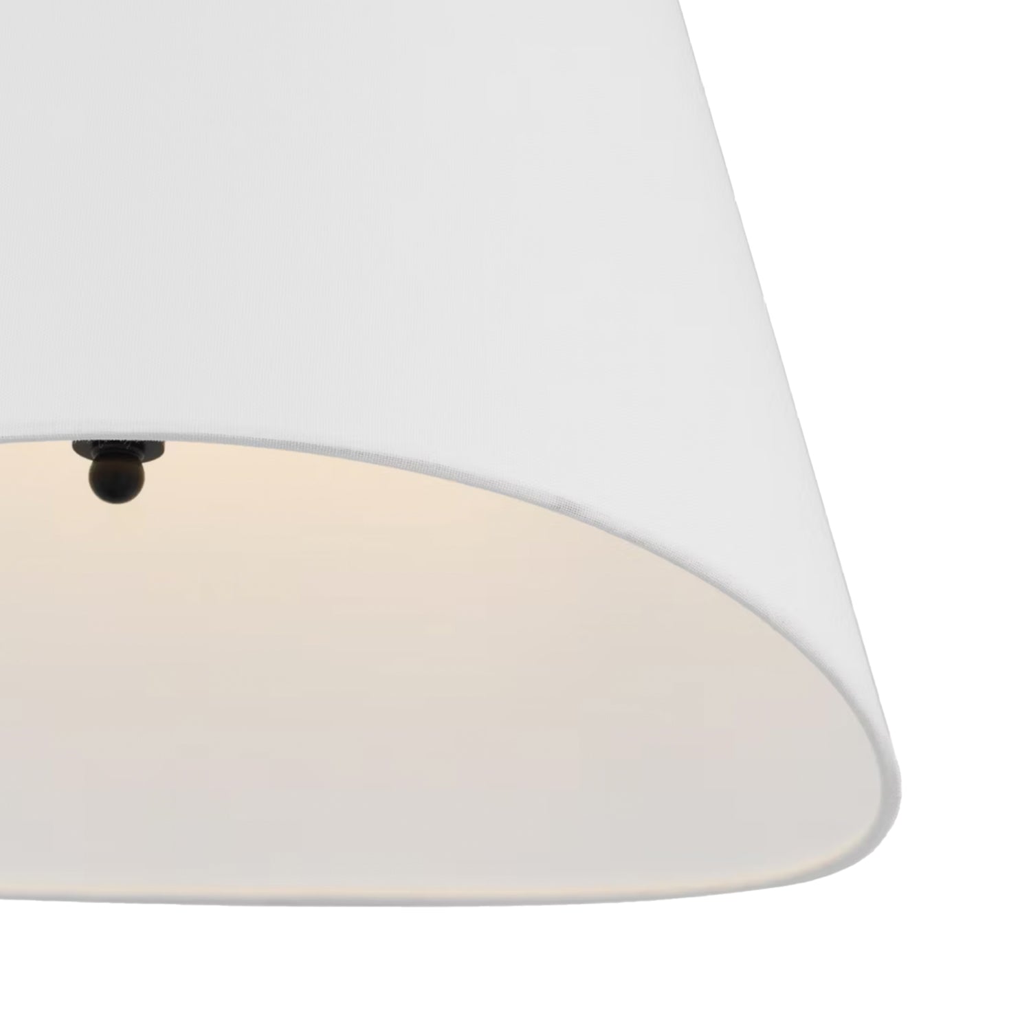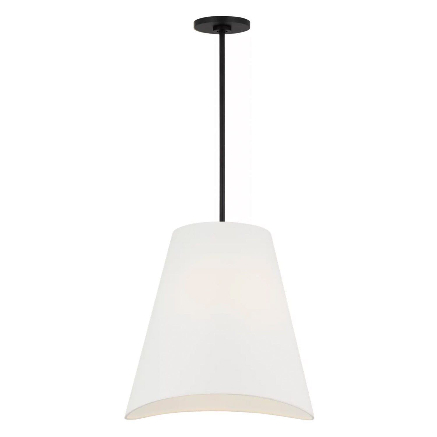 The Jada Medium Conical Pendant 18", Matte Black offers a refined take on classic lighting, featuring a crisp white linen shade that forms a sophisticated, tapered silhouette. The striking contrast of the matte black finish provides a bold, modern edge to the soft fabric, creating a look that is both timeless and tailored for contemporary interiors. Designed to cast a soft, diffused glow, this pendant brings an elegant sense of scale to dining areas, entryways, or kitchen islands. Its clean geometry and high-quality steel construction ensure it serves as a steady focal point while blending seamlessly into a variety of decor styles.