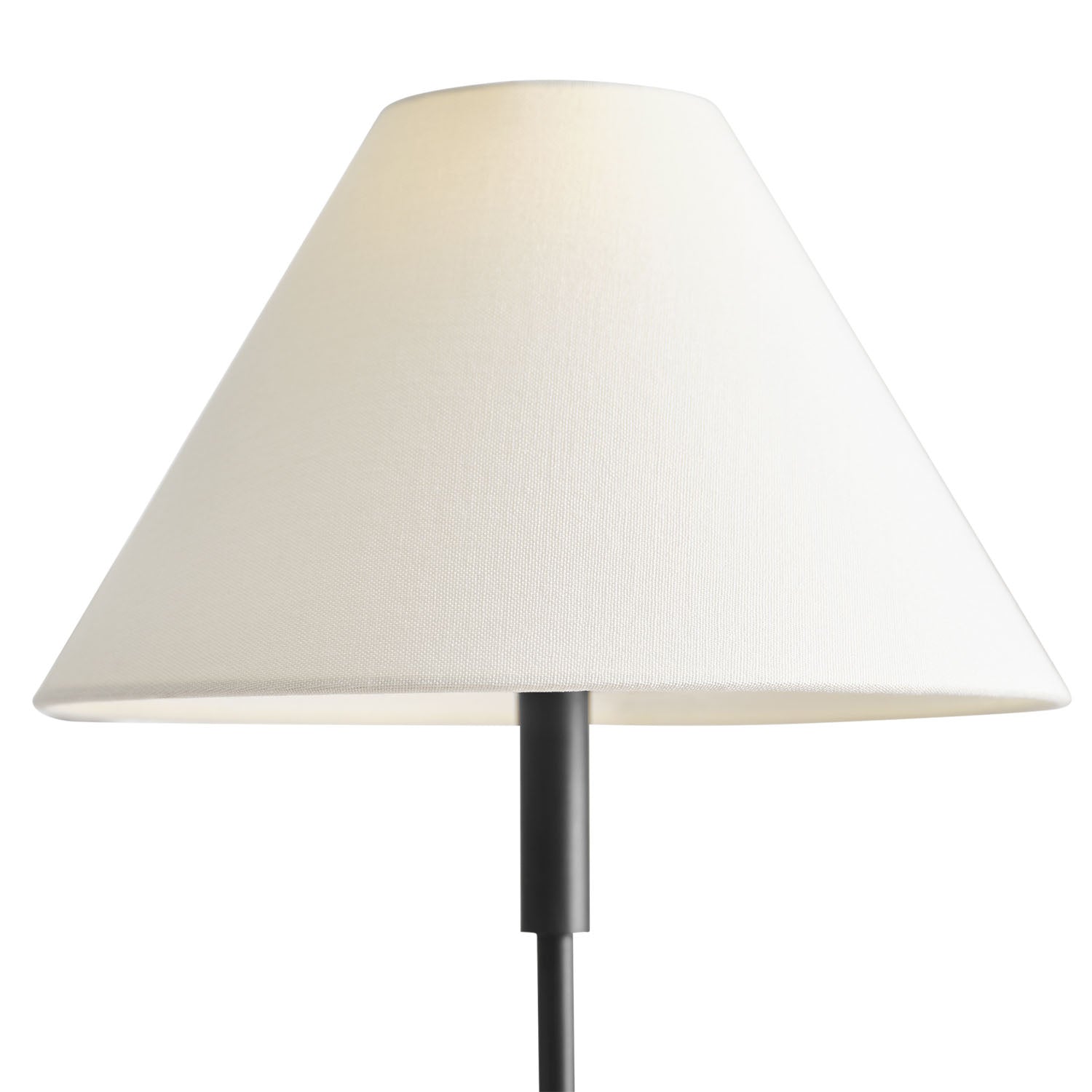 • White linen shade provides soft, diffused illumination with classic design featuring clean lines and thoughtful details