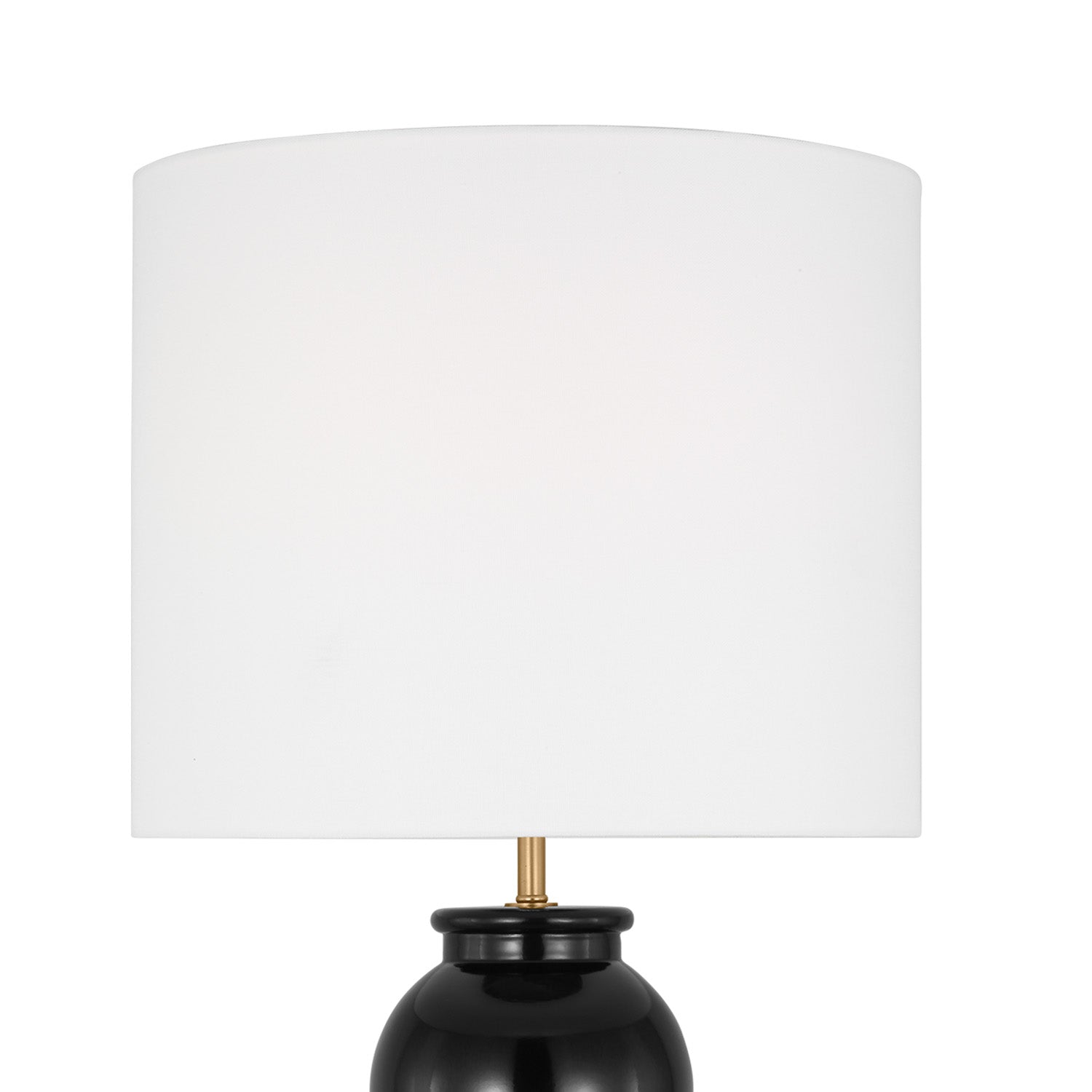 The Truett Table Lamp features symmetrical lines that give the traditional shape a modern look with sophisticated glass construction that flows beautifully to the base. This striking 27" table lamp is topped with a beautiful white linen shade, perfect for living rooms, bedrooms, side tables, and spaces seeking refined lighting with timeless appeal. The glossy black finish creates dramatic elegance while delivering focused illumination for reading and ambient lighting needs. Crafted of high-quality glass with expert attention to detail, this lamp offers both visual impact and functional performance. With its convenient plug-in installation and on/off switch at the socket, this table lamp transforms any space with distinctive style and performance.