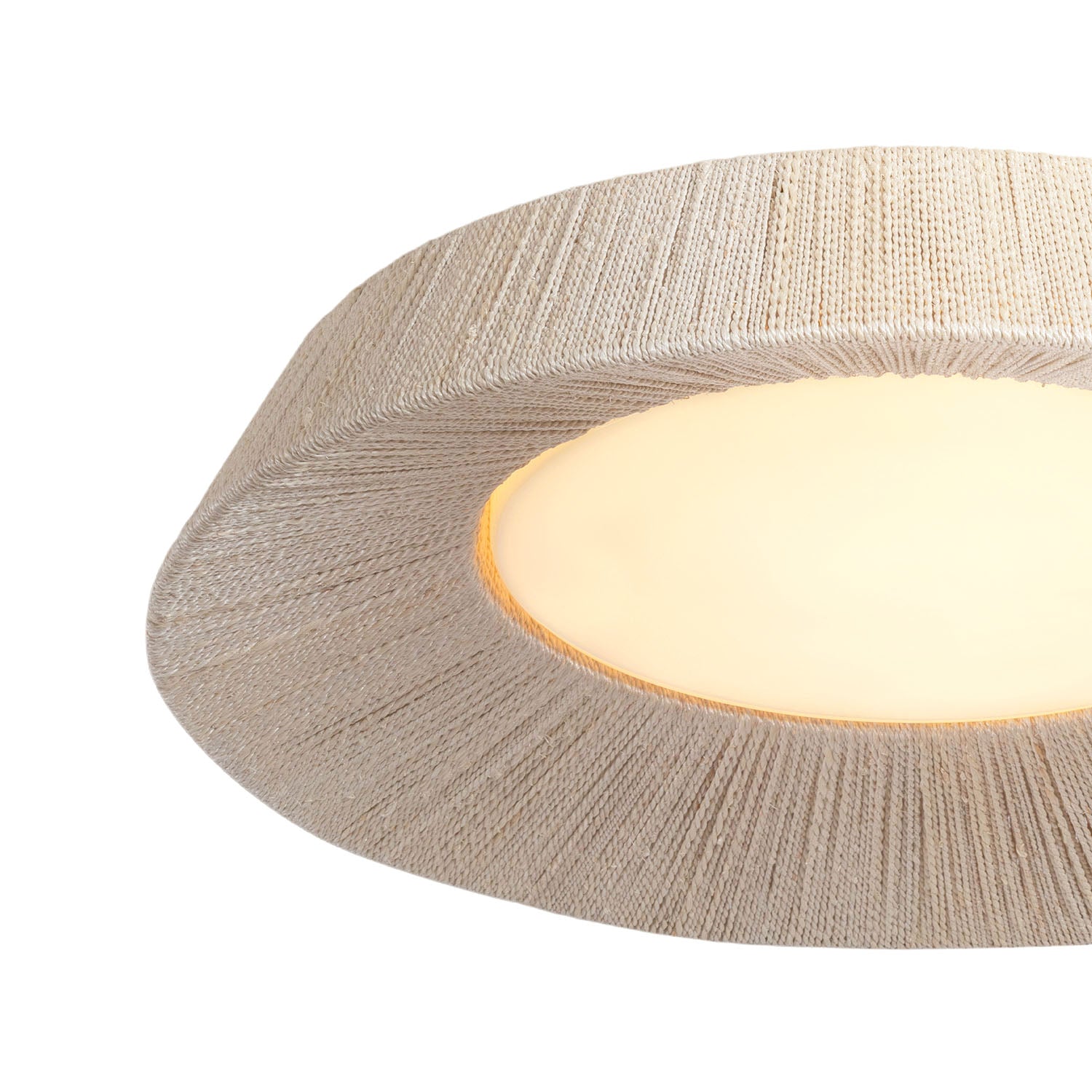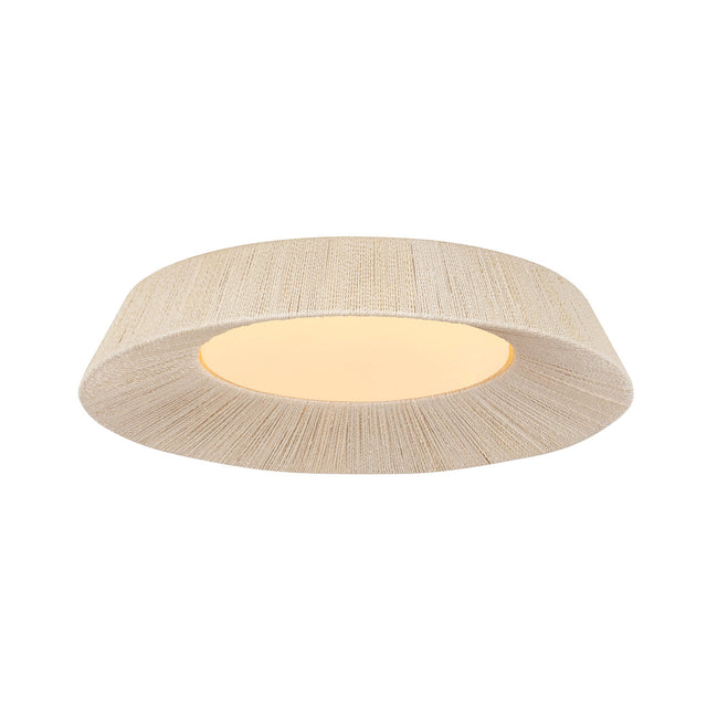 • Callen features a minimalist flush mount silhouette hand-wrapped in natural rope for a high-texture, organic aesthetic
