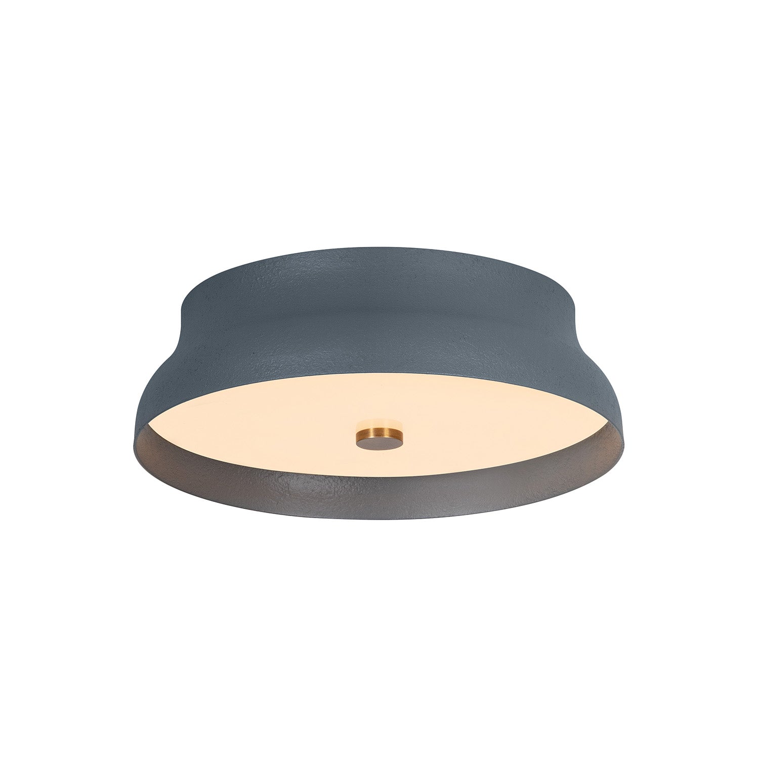 The Lark LED Flush Mount 12" takes the traditional flush mount silhouette in a new direction, merging a minimalist profile with a high-performance integrated light source. The iron frame flares subtly around an opal glass diffuser, creating a soft, ambient glow that eliminates harsh shadows while maintaining a clean, architectural look. Finished in a deep Slate with blue undertones and Patina Brass accents, this fixture brings a contemporary piece to entryways, living rooms, and hallways, serving as a versatile solution for modern interiors. Its compact 12" diameter and low-profile height make it an ideal choice for spaces with standard ceiling heights where a sophisticated, understated aesthetic is desired.