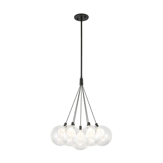 The Soren 7 Light LED Chandelier blends modernity with bold statements through its sleek design and sophisticated finish combinations. This striking 16" chandelier delivers sleek sophistication perfect for dining rooms, living spaces, entryways, and areas seeking abundant illumination with contemporary appeal. The beautiful clear glass shades provide crisp, focused lighting that showcases the integrated LED technology throughout the space, while the matte black finish adds polished elegance to any interior. The integrated LED technology delivers warm 3000K light at 90 CRI with exceptional efficiency, while the flexible hanging height range offers versatile installation options. With its dimmable capabilities and expert construction, this chandelier makes a statement that's both modern and unforgettable.