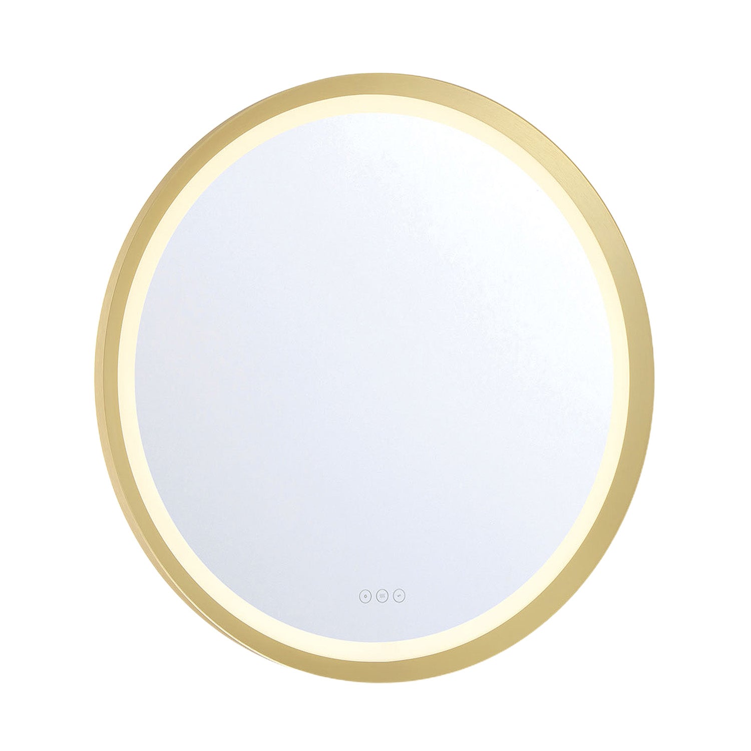 Norma Medium LED Round Mirror 32" x 32", Brushed Brass